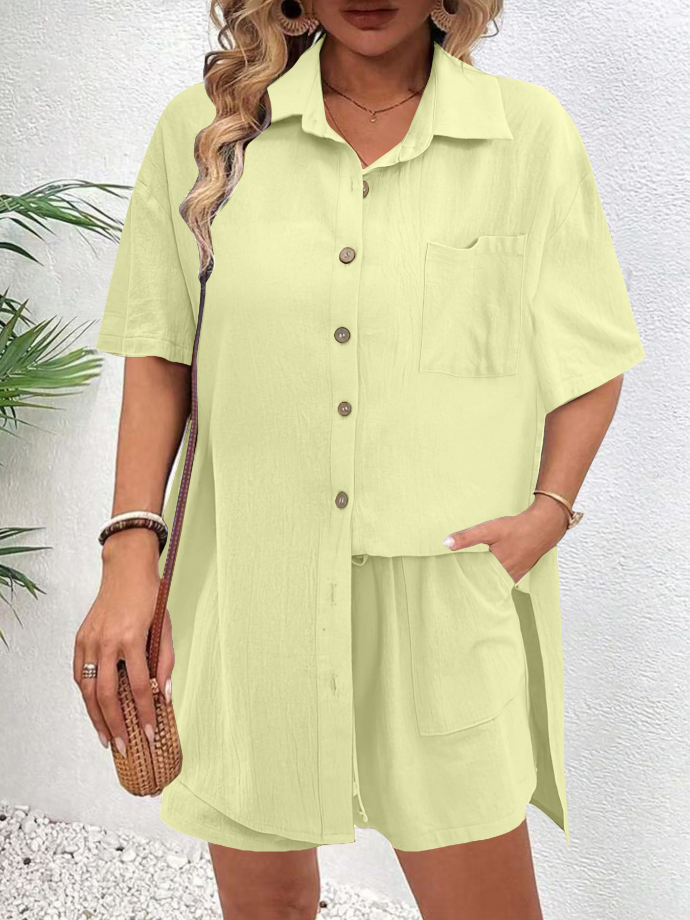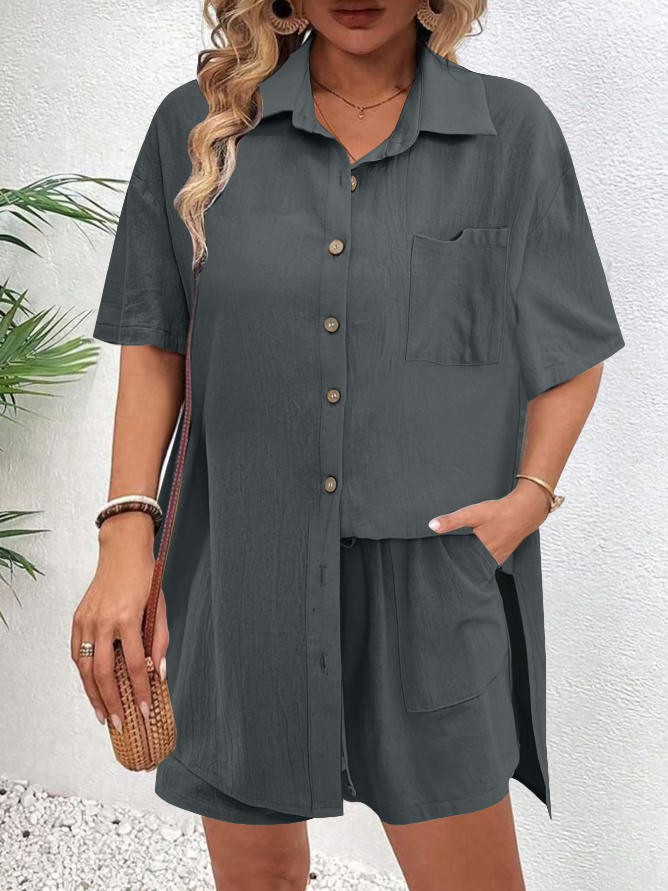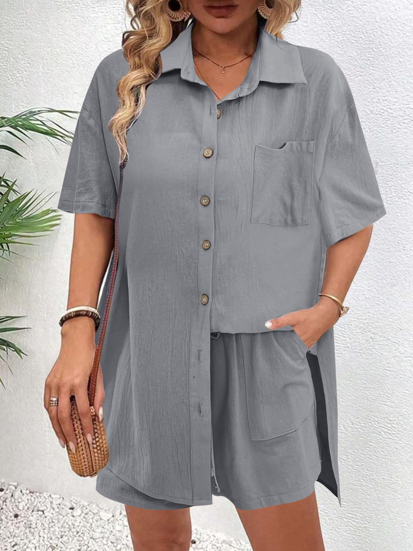 해외 무역 여성복 아마존 알리익스프레스 인기 상품 빈티지 가디건 반바지 패셔너블하고 우아한 캐주얼 여성 세트
