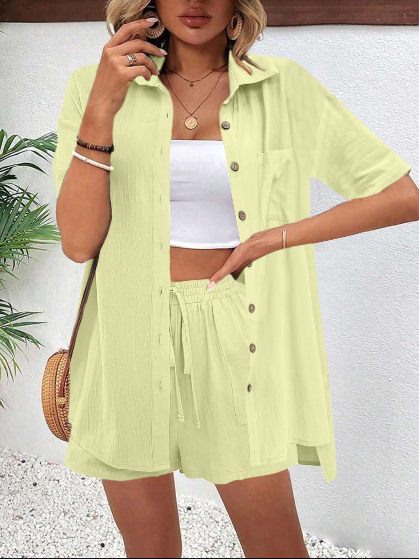 해외 무역 여성복 아마존 알리익스프레스 인기 상품 빈티지 가디건 반바지 패셔너블하고 우아한 캐주얼 여성 세트스토어 가기