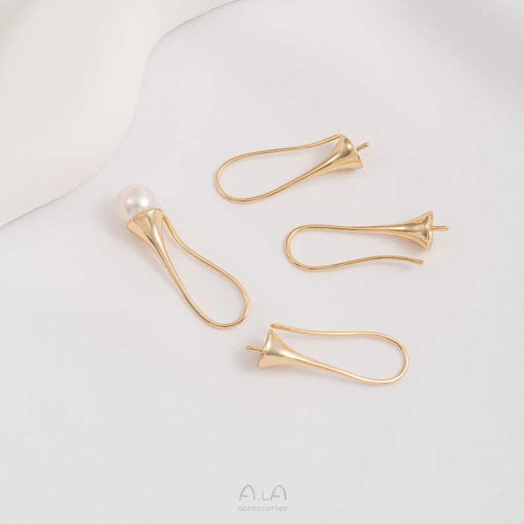 14K 금도금 트럼펫 비드 이어 후크 드롭 모양의 진주 펜던트 용암 스틱 diy 귀걸이 귀걸이 액세서리