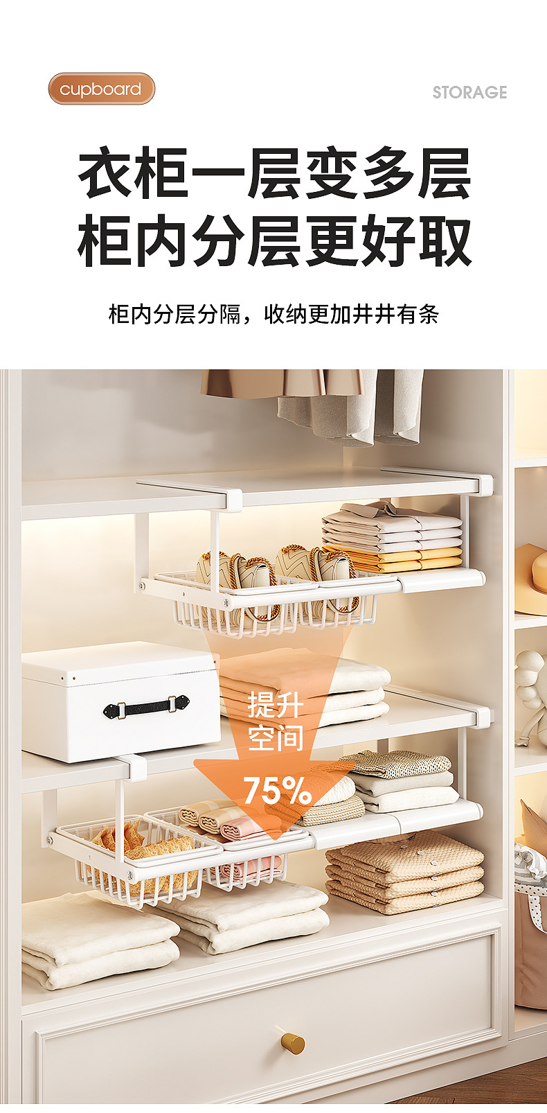엄선된 조미료 보관 선반, 주방 수납용, 확장 가능한 걸이형 바구니, 캐비닛 내 무타공 하단 걸이형 선반, 다층 선반스토어 가기