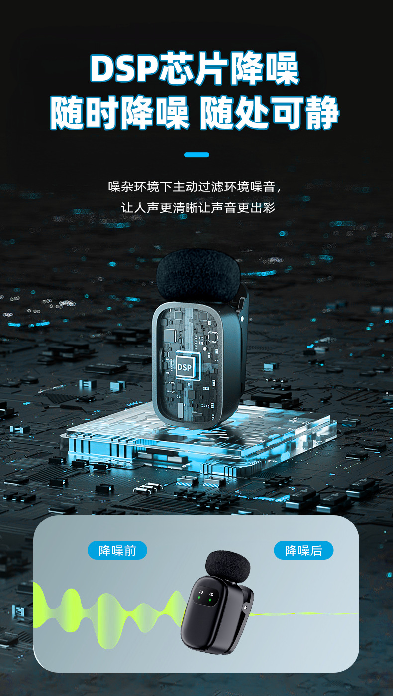 공장 개인 모델 미니 무선 라발리에 마이크 지능형 소음 감소 마이크 라이브 방송 라발리에 마이크