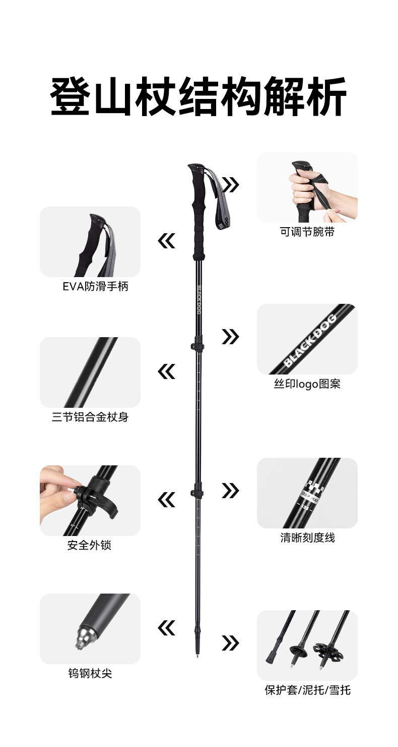 BLACKDOG 검은 개 Qishan 등산 지팡이 야외 하이킹 등산 알루미늄 합금 텔레스코픽 지팡이 지팡이 장비