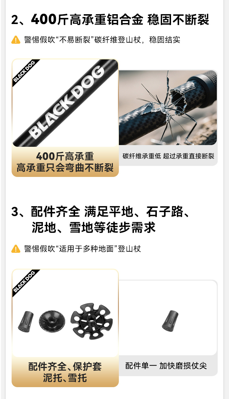 BLACKDOG 검은 개 Qishan 등산 지팡이 야외 하이킹 등산 알루미늄 합금 텔레스코픽 지팡이 지팡이 장비스토어 가기