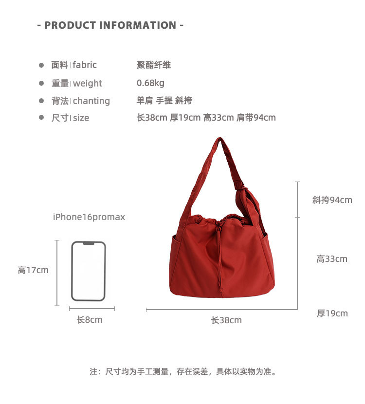여성을위한 대용량 Drawstring 통근 가방 2025 새로운 캐주얼 나일론 천 다목적 어깨 경량 스포츠 크로스 바디 백