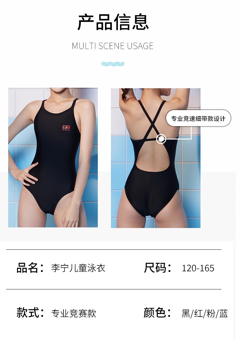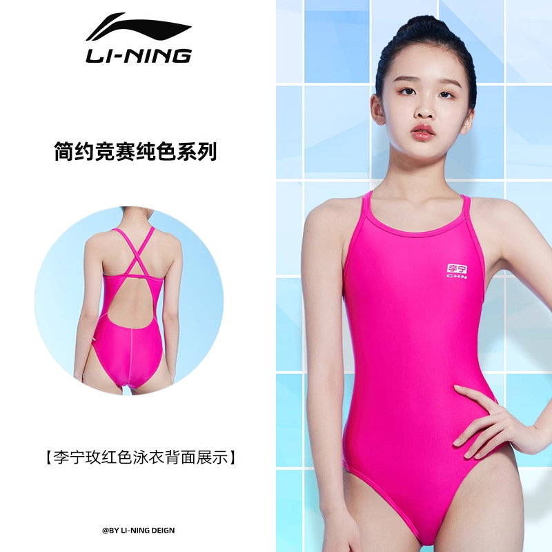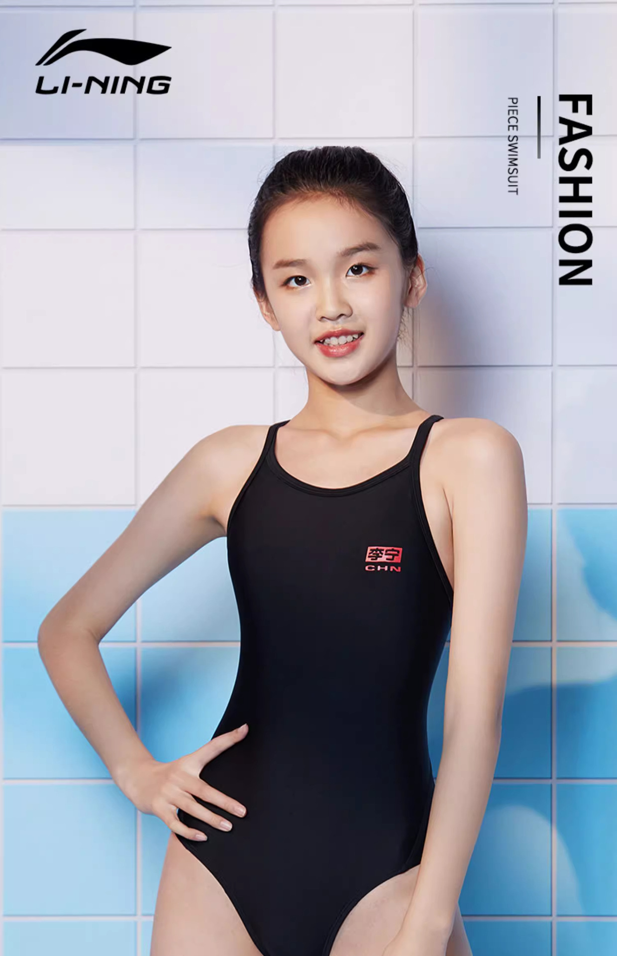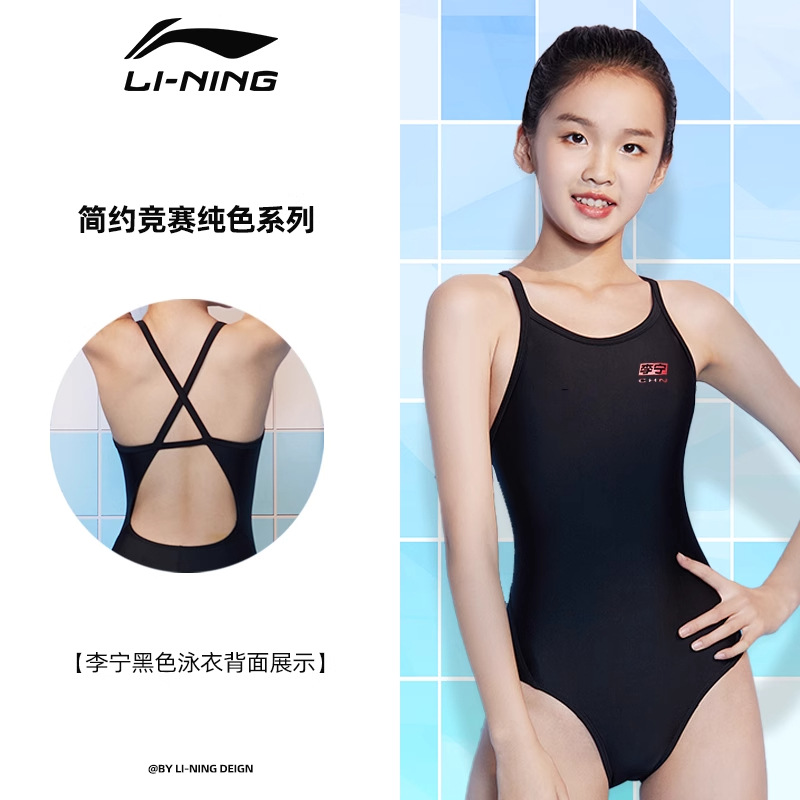 Li Ning 어린이 수영복 여성용 원피스 전문 경쟁 속건성 삼각형 훈련 소녀 중대형 어린이 온천 수영복