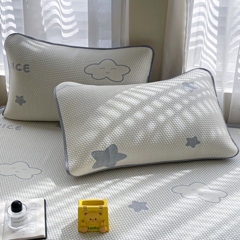 여름 얼음 실크 베개 커버 한 쌍, 시원한 얼음 콩 베개 커버 48cmx74cm 베개 코어 라이너 커버 전체 후드스토어 가기