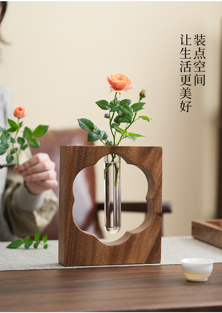 호두 단단한 나무 수경 꽃 테이블 장식 미니 유리 식물 꽃꽂이 꽃병 홈 유리 꽃꽂이