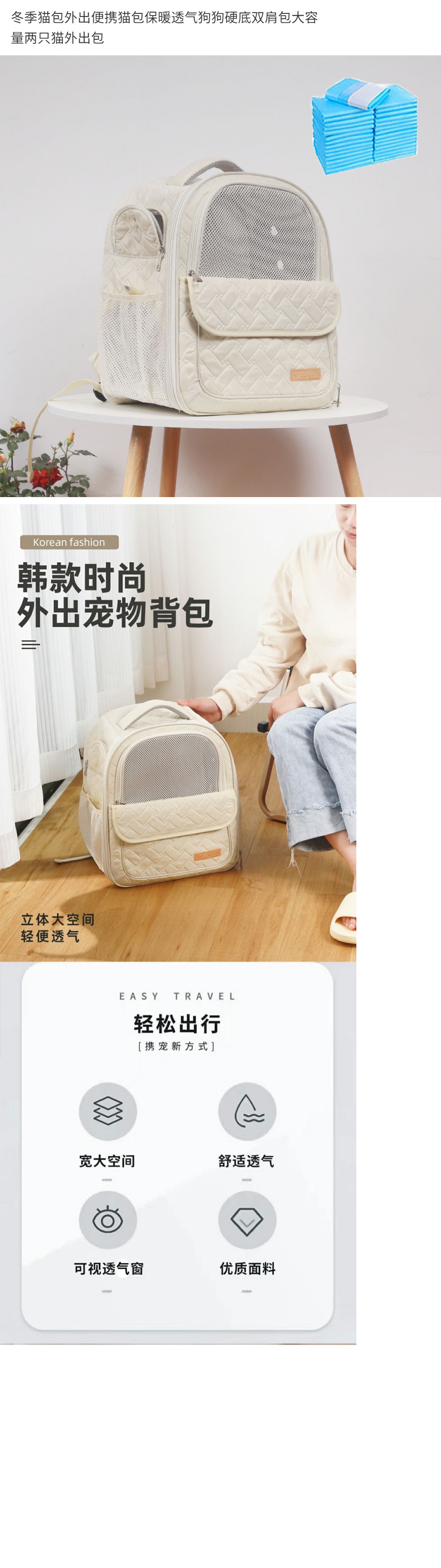 애완동물 고양이 가방, 여행용 휴대용 고양이 가방, 따뜻하고 통기성이 좋은 강아지 하드 밑창 배낭, 대용량 고양이 2마리 외출 가방스토어 가기