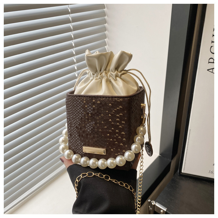 여성을위한 핸드 휴대용 진주 버킷 백 2025 여름 새로운 스타일 간단한 패션 숄더 백 틈새 부드러운 질감 크로스 바디 백