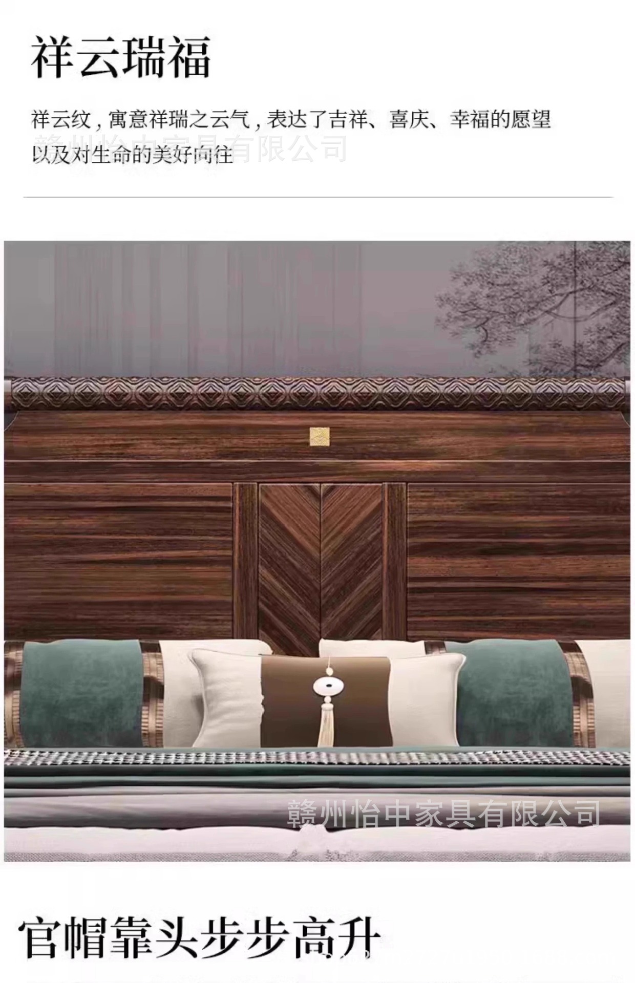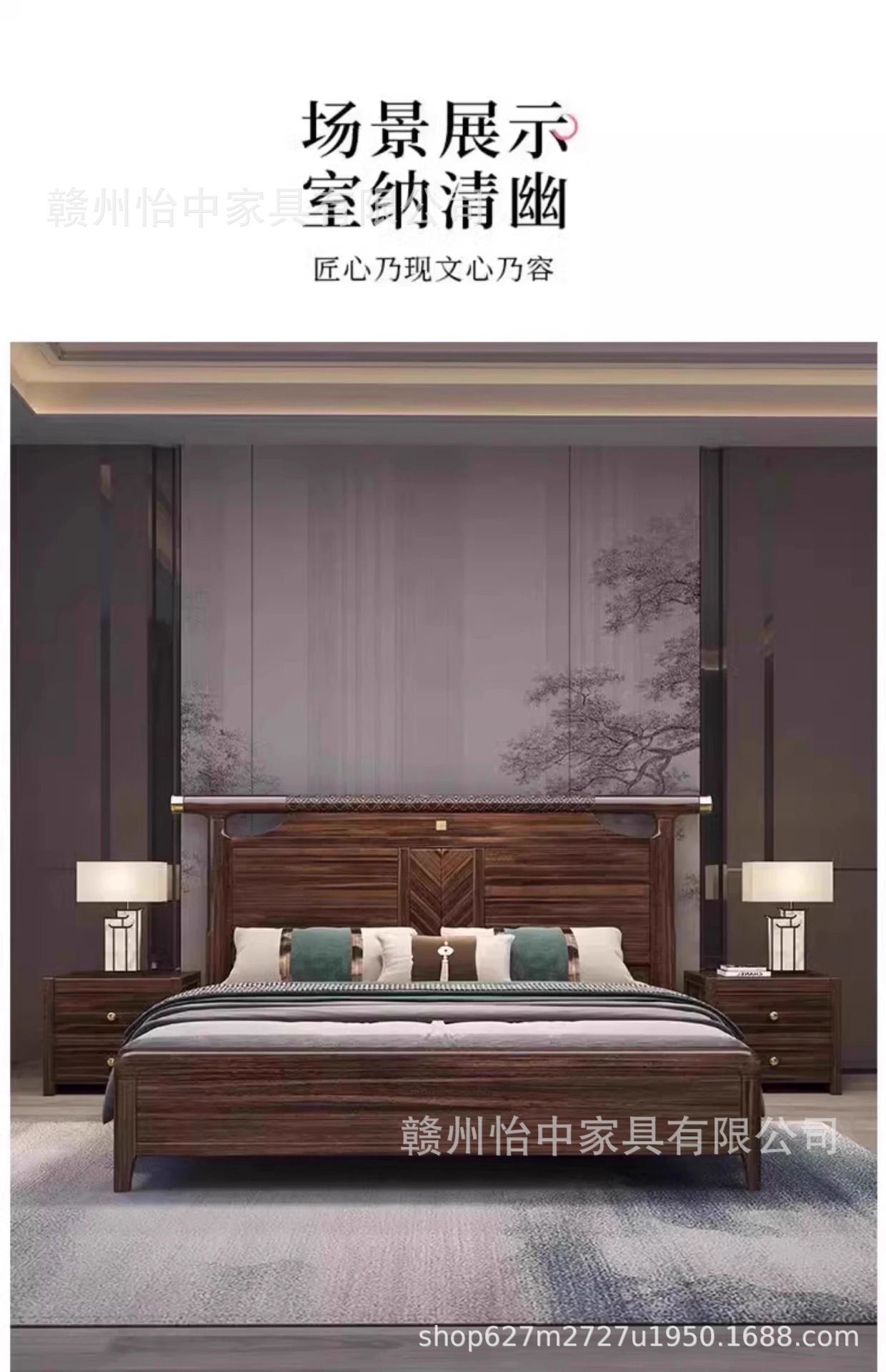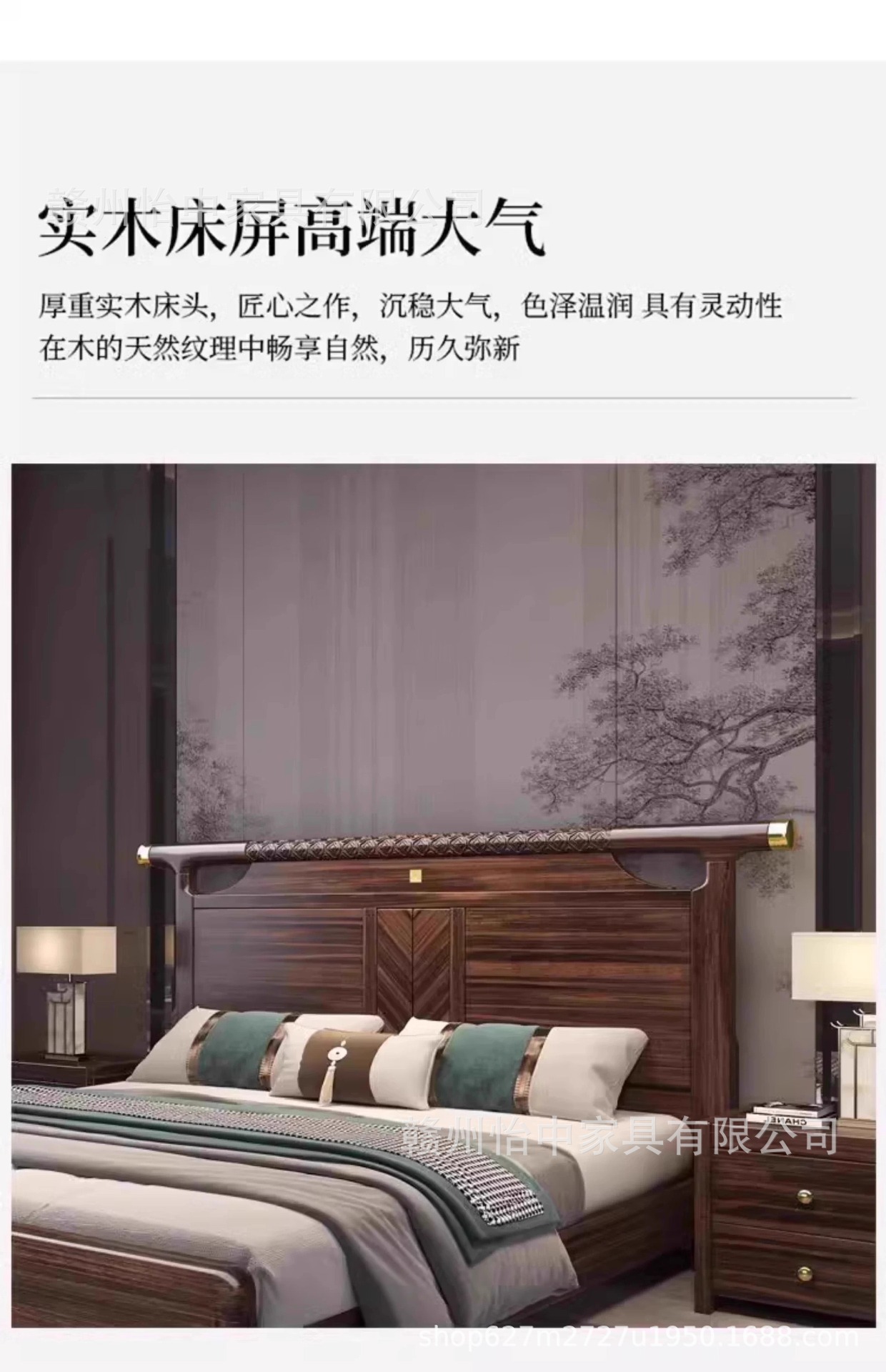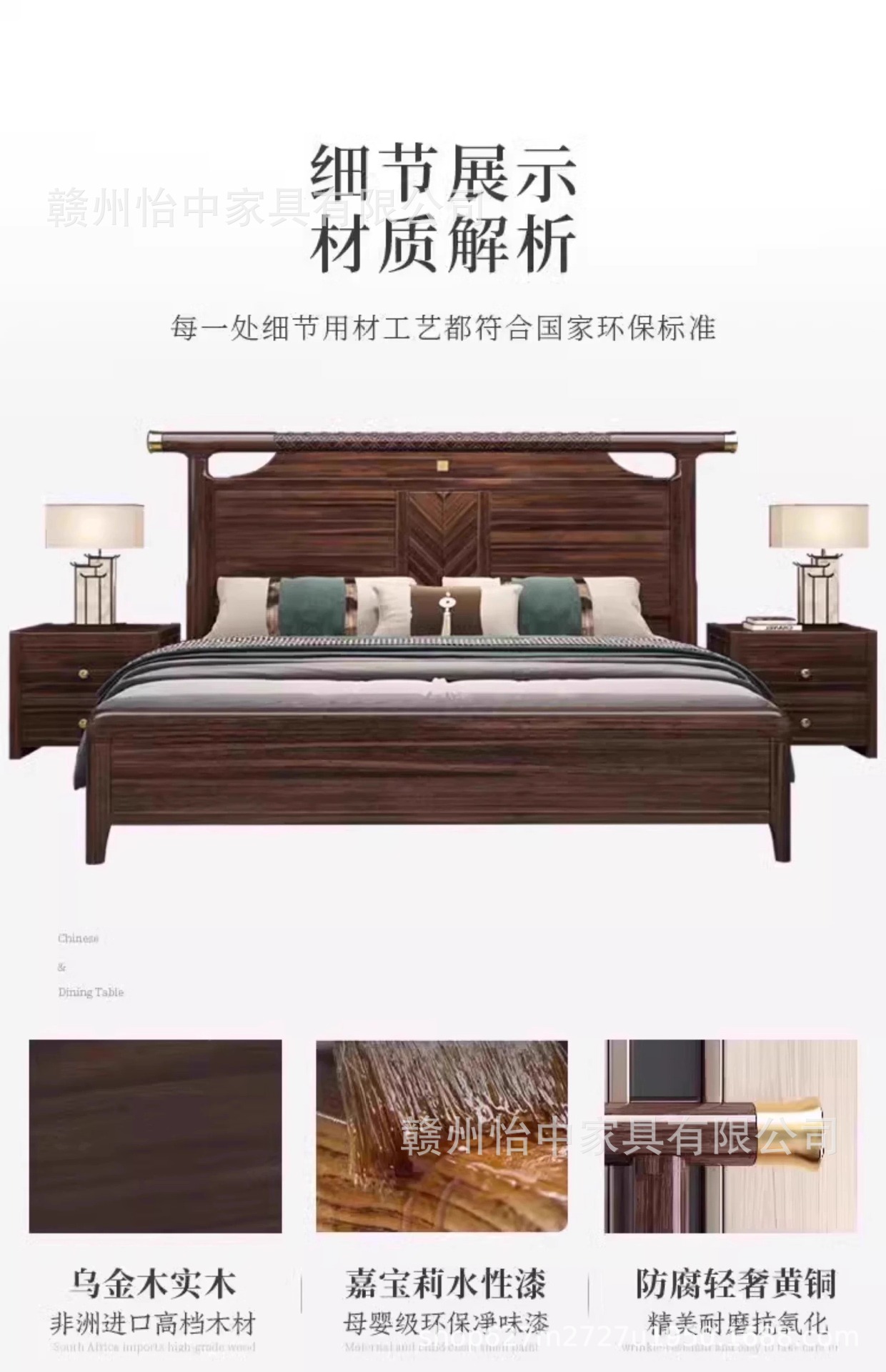 새로운 중국 스타일 검은 골드 나무 단단한 침대 1.8m 현대 간단한 빛 럭셔리 홈 마스터 침실 중국 스타일 하이 엔드 더블 침대스토어 가기
