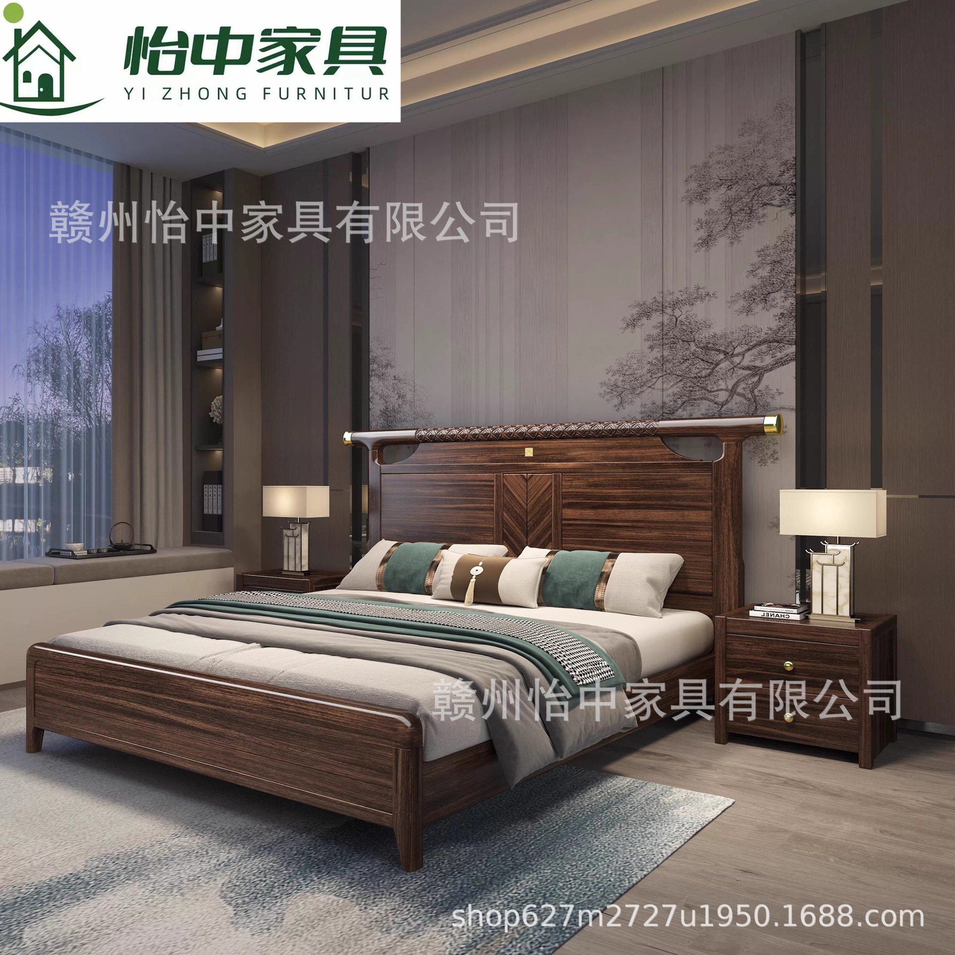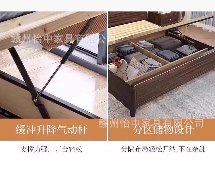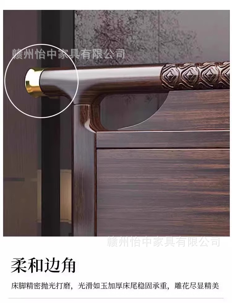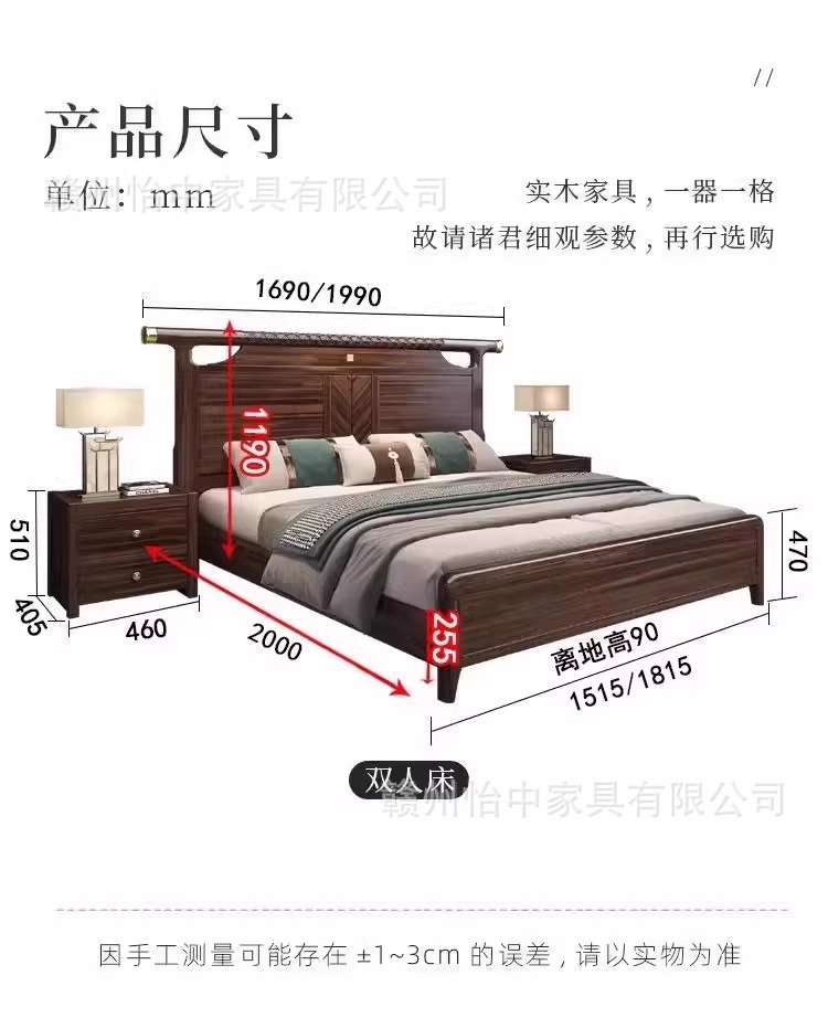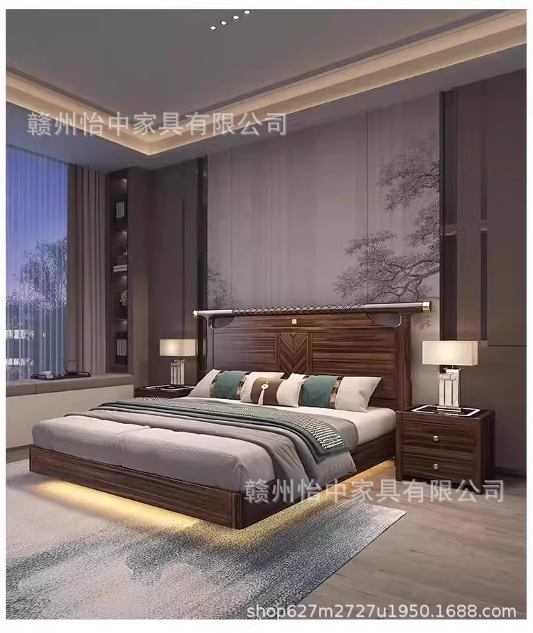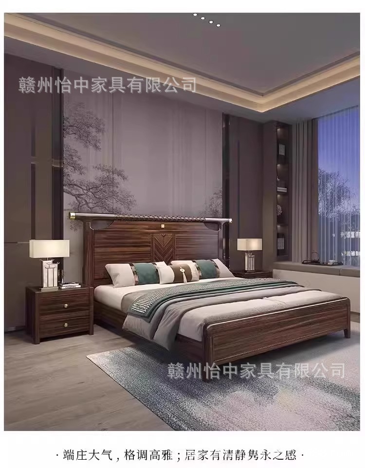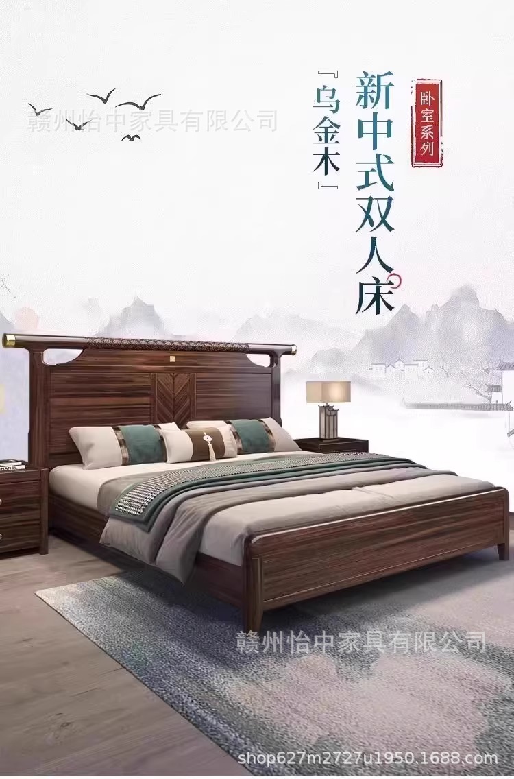새로운 중국 스타일 검은 골드 나무 단단한 침대 1.8m 현대 간단한 빛 럭셔리 홈 마스터 침실 중국 스타일 하이 엔드 더블 침대