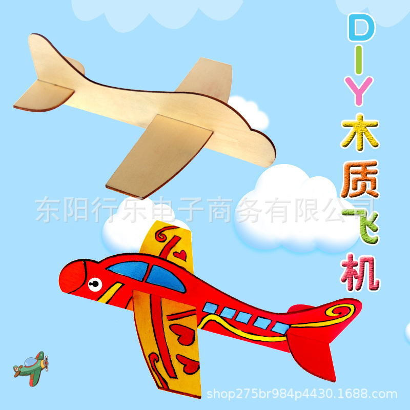 국경 간 신제품 인기 낙서 비행기 나무 공예 DIY 비행기 장식품 어린이 교육 전투기 모델스토어 가기