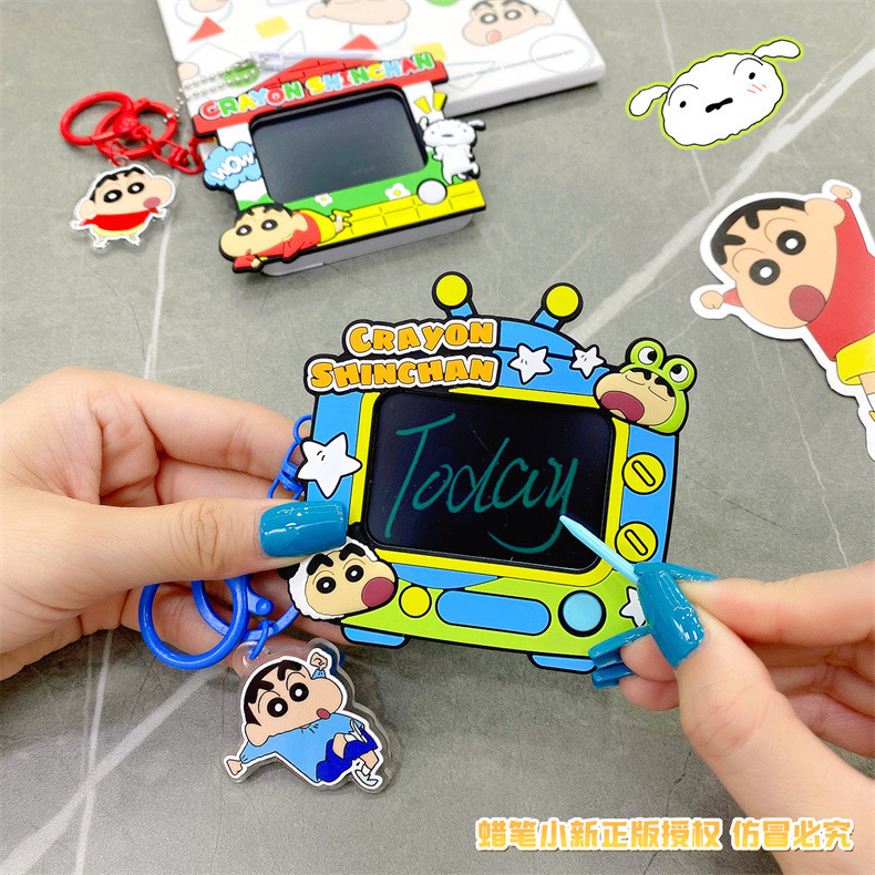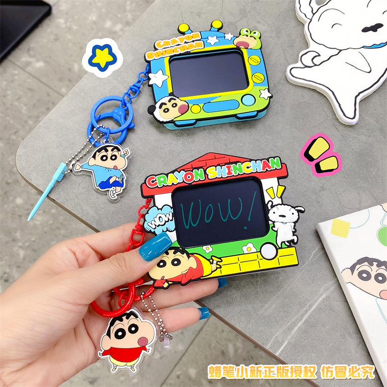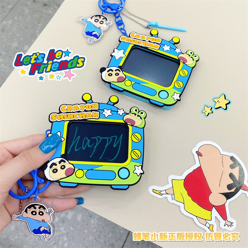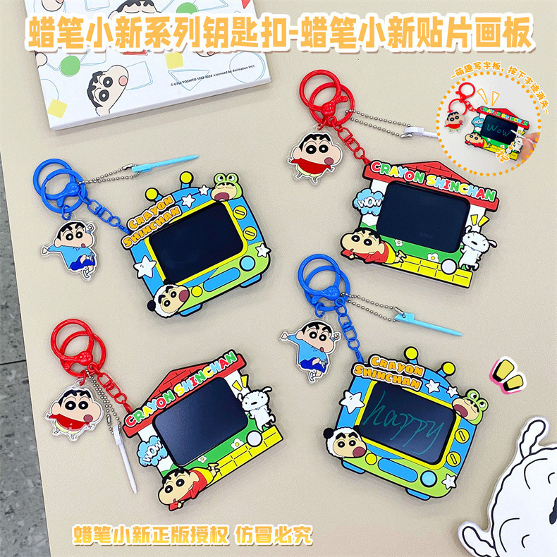 정품 크레용 신짱 패치 드로잉 보드 미니 낙서 보드 키 체인 재미 있은 감압 장난감 커플 학교 가방 펜던트스토어 가기