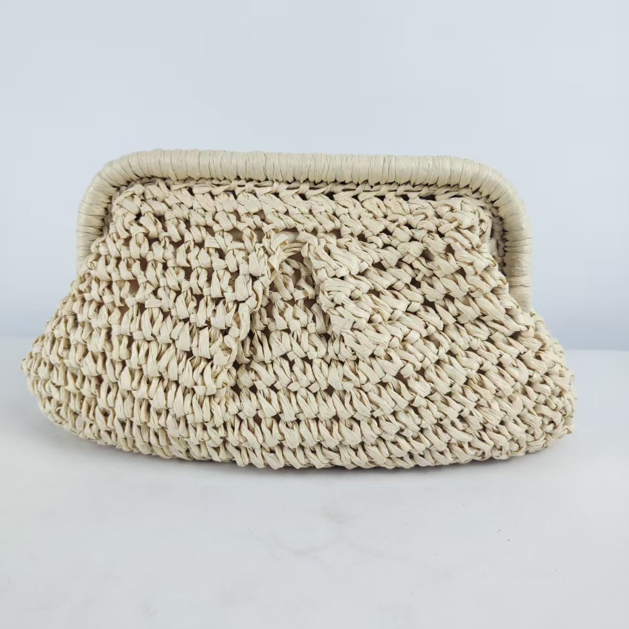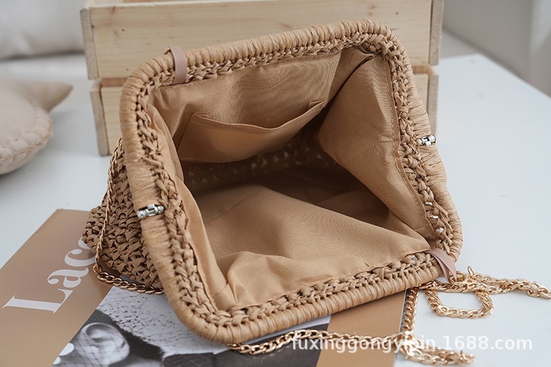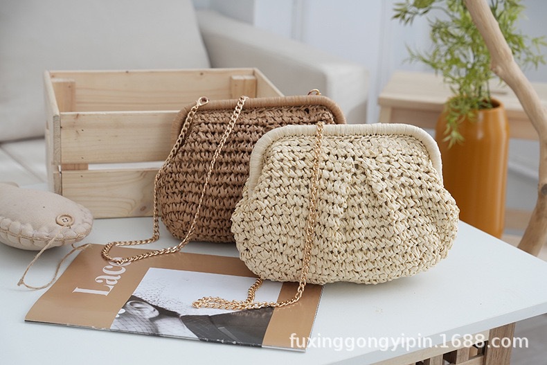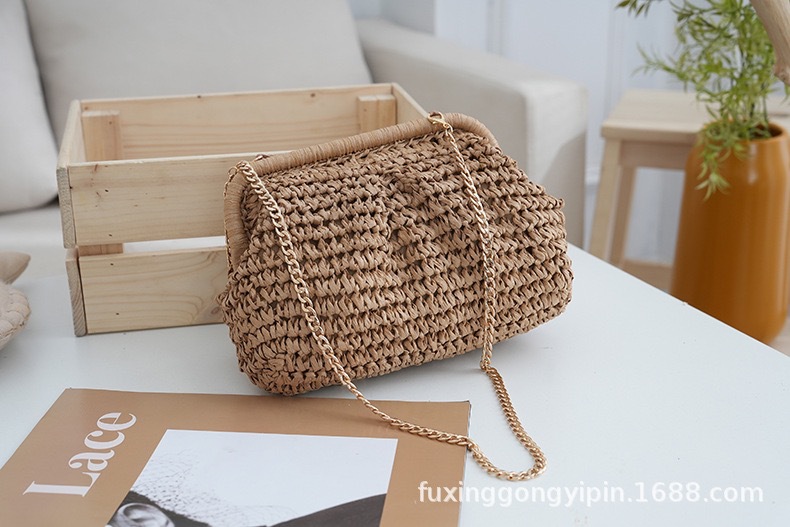 2025 새로운 손으로 짠 가방 솔리드 컬러 다목적 숄더 백 크로스 바디 백 여성 캐주얼 휴가 비치 가방 체인 가방스토어 가기