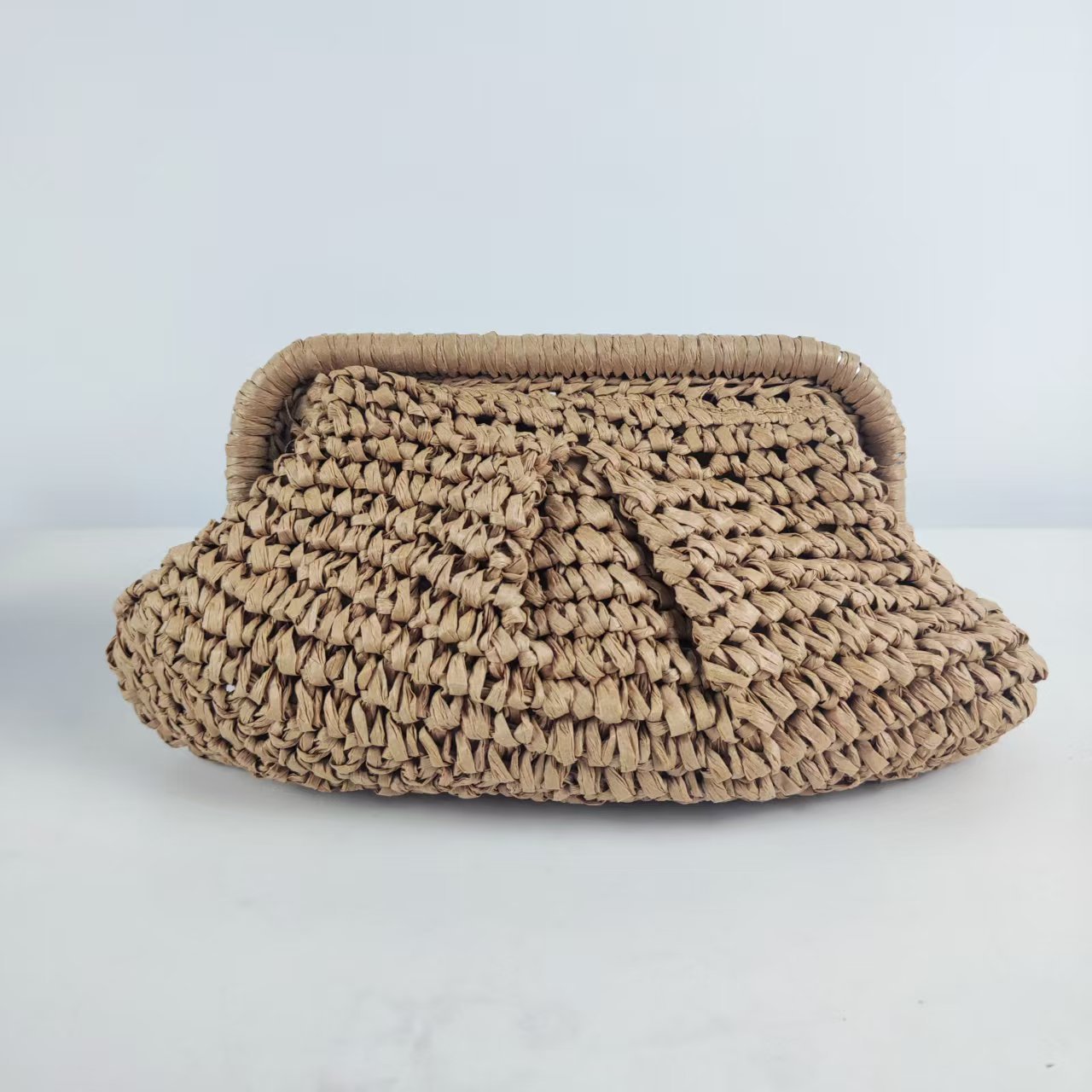 2025 새로운 손으로 짠 가방 솔리드 컬러 다목적 숄더 백 크로스 바디 백 여성 캐주얼 휴가 비치 가방 체인 가방