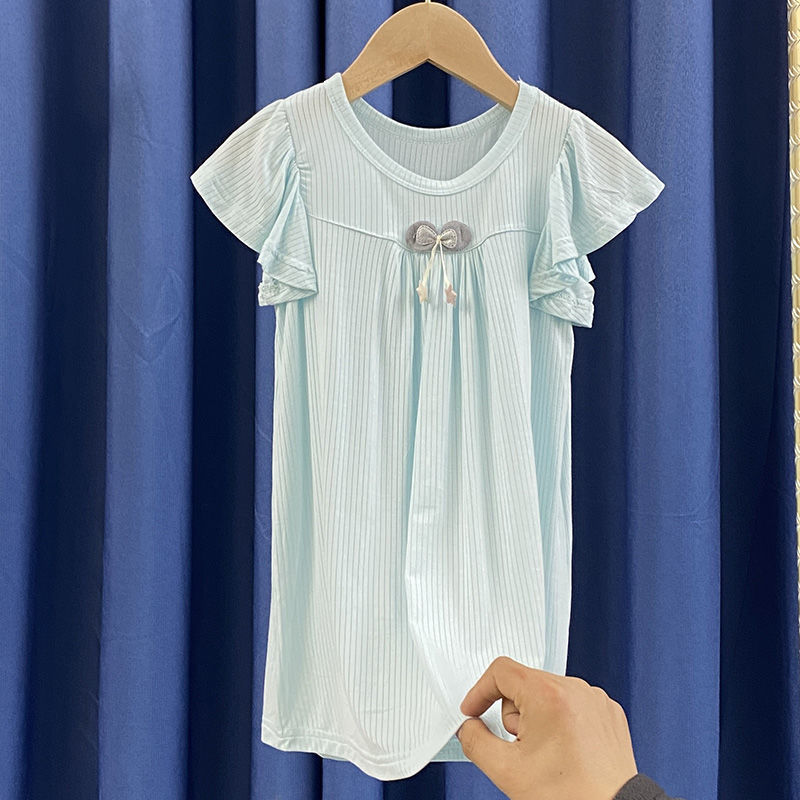 여자 잠옷 여름 공주 스타일 얇은 반팔 에어컨 옷 모달 고탄성 어린이 가정 의류 잠옷스토어 가기
