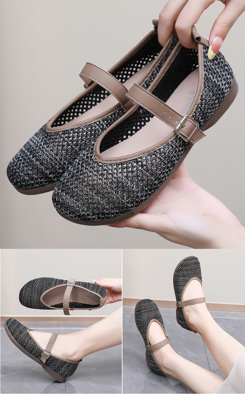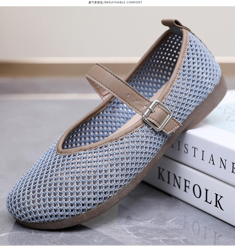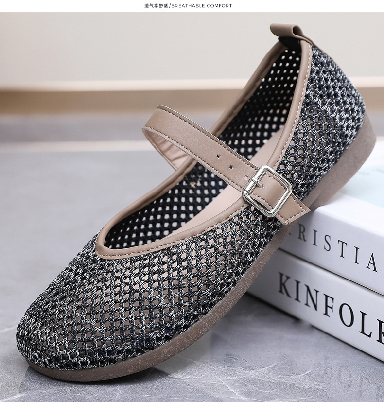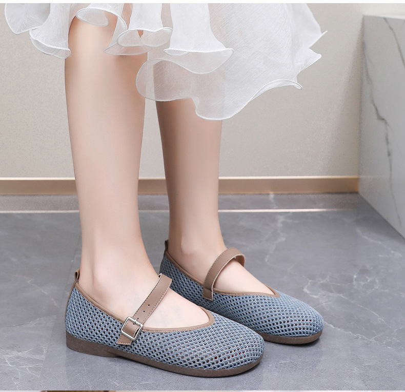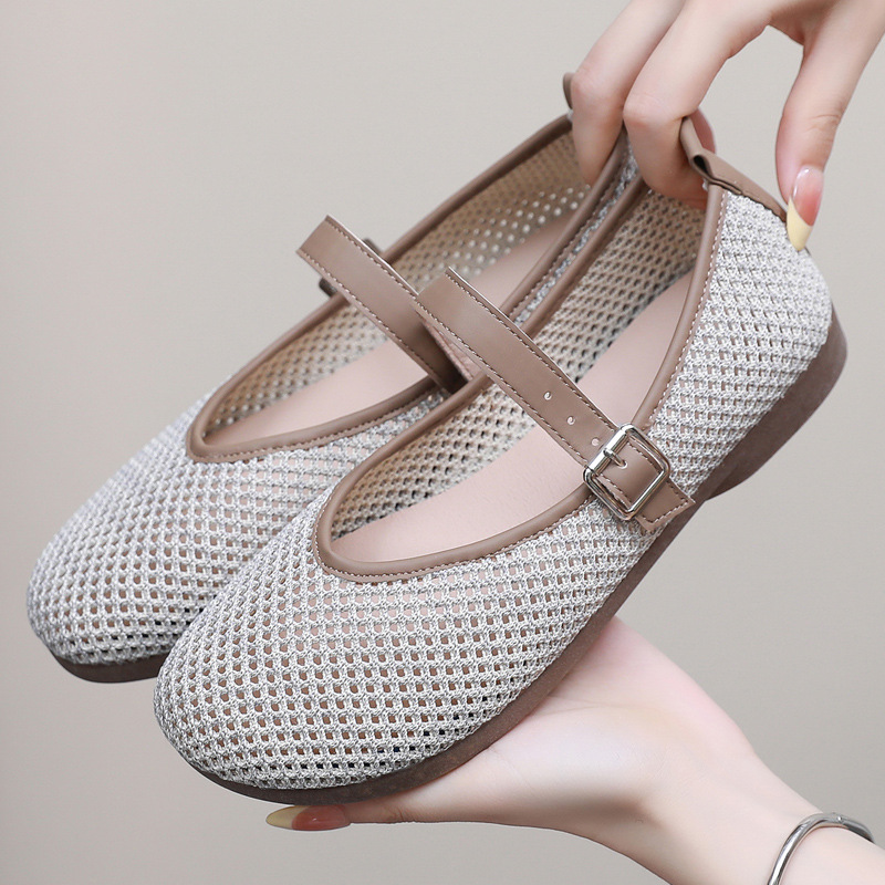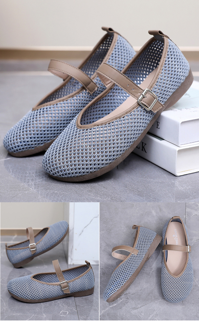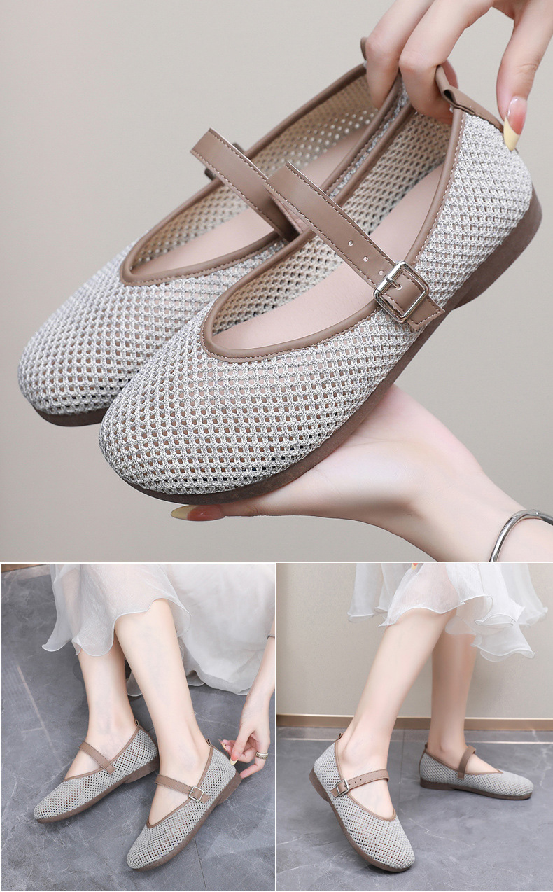 여성을위한 여름 메쉬 신발 2025 여성을위한 새로운 메리 제인 신발 통기성 부드러운 바닥 플라이 짠 메쉬 중공 Fishnet 신발스토어 가기
