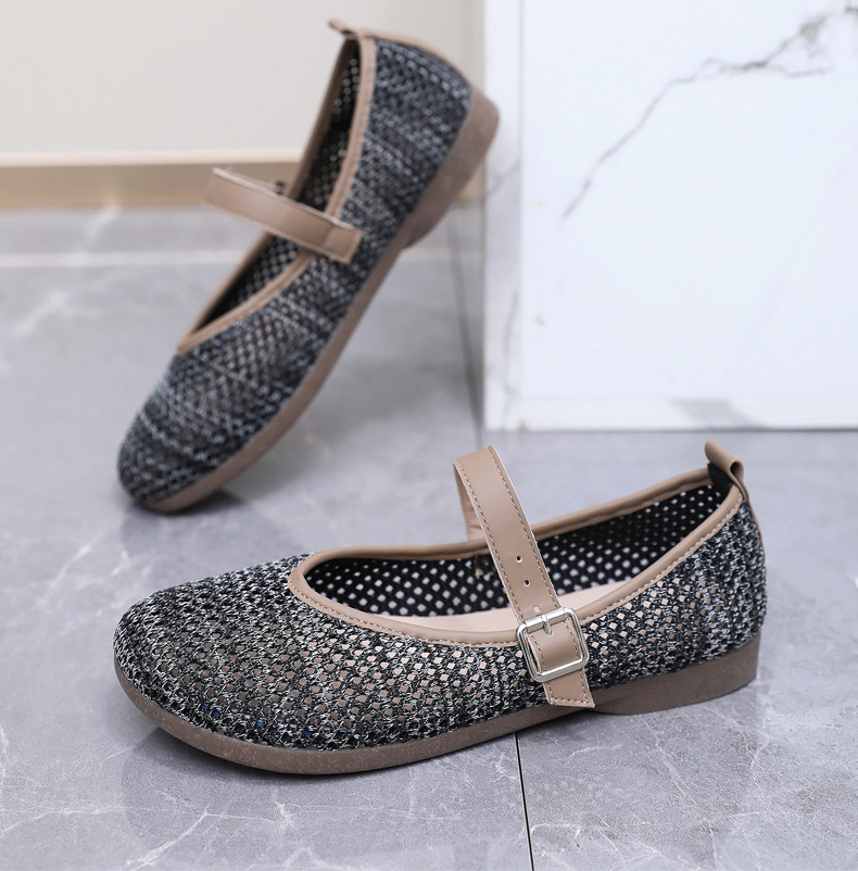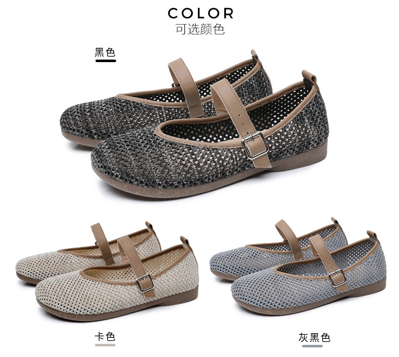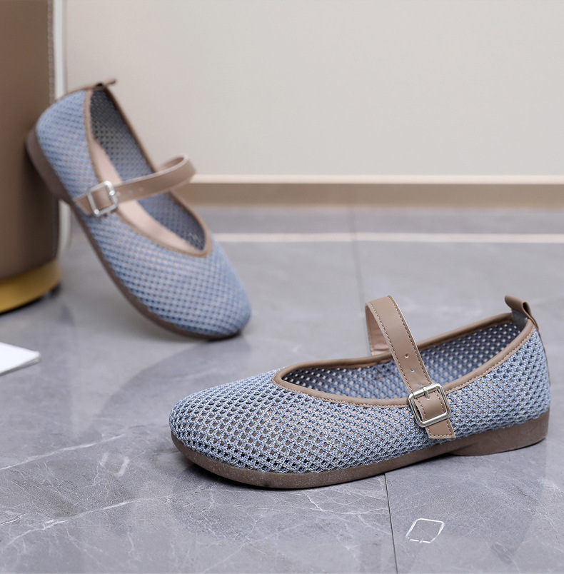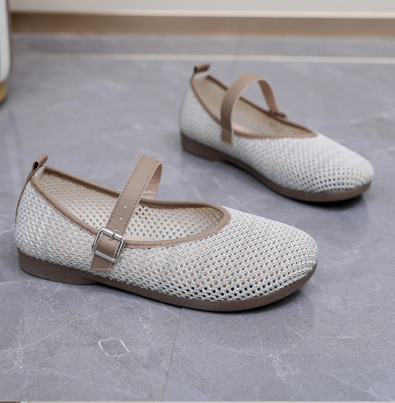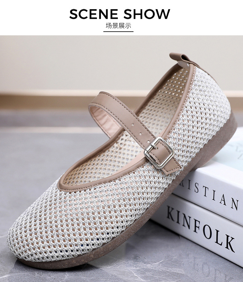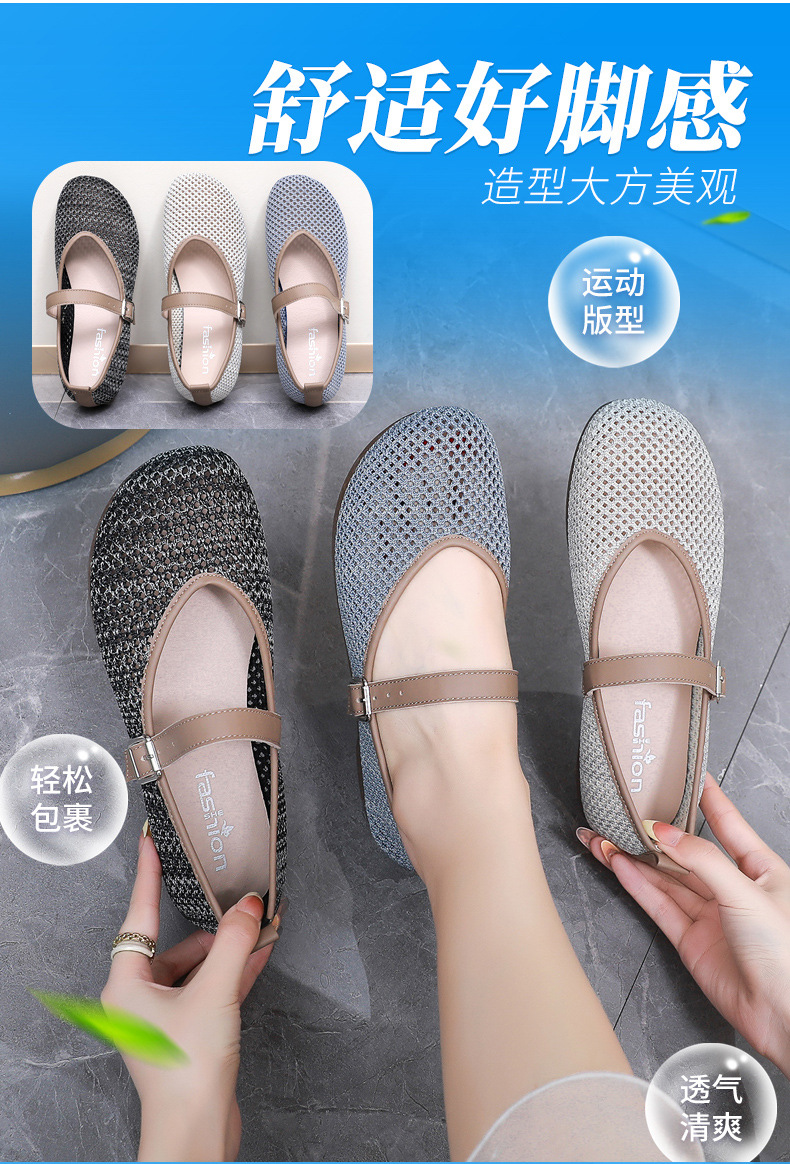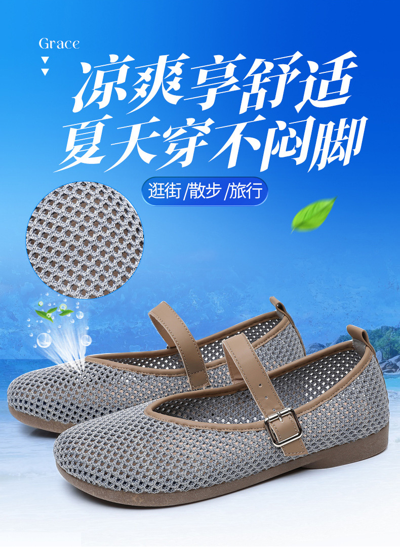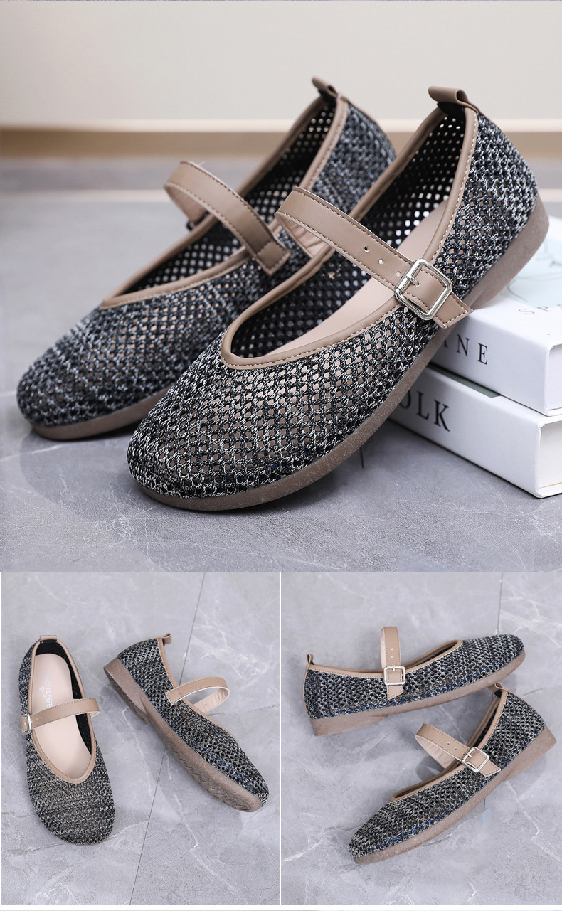 여성을위한 여름 메쉬 신발 2025 여성을위한 새로운 메리 제인 신발 통기성 부드러운 바닥 플라이 짠 메쉬 중공 Fishnet 신발스토어 가기