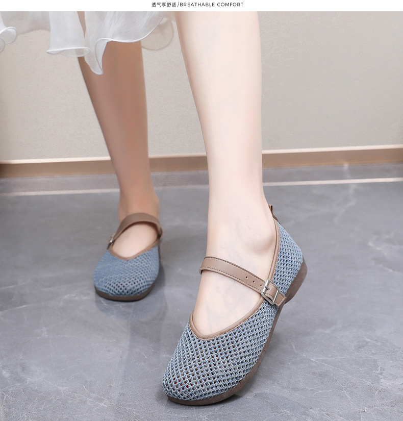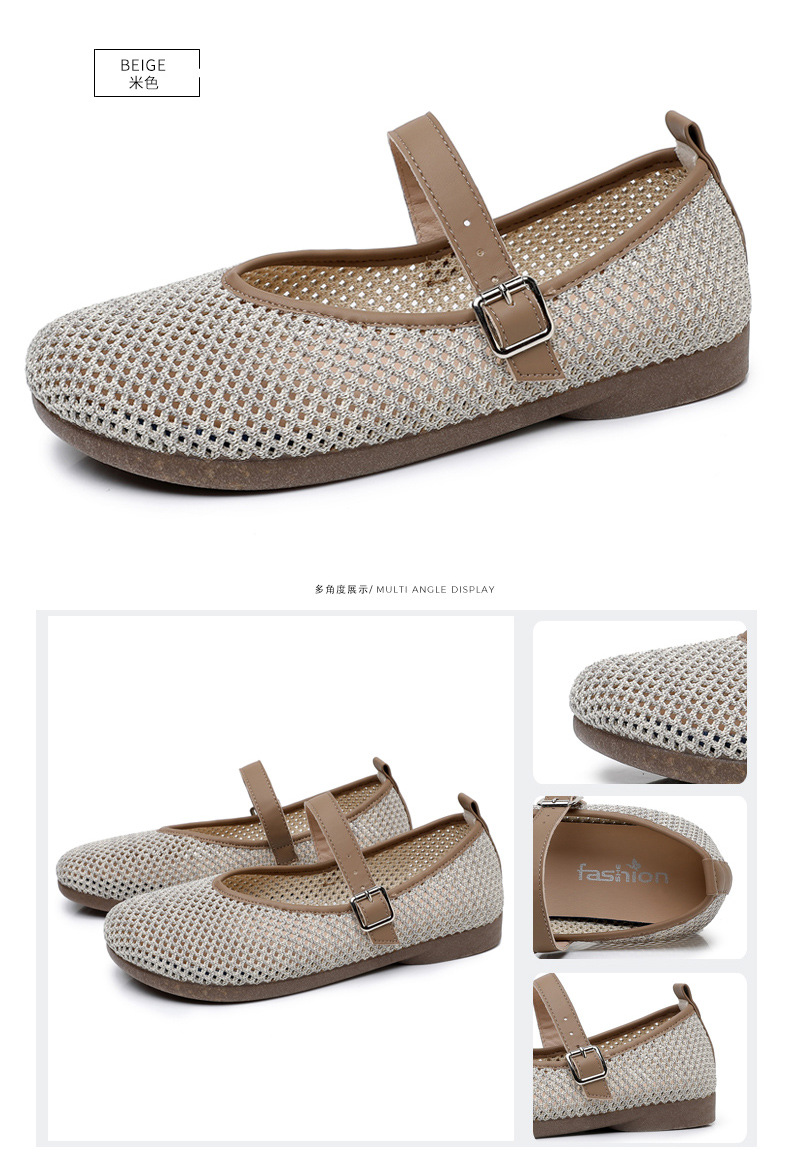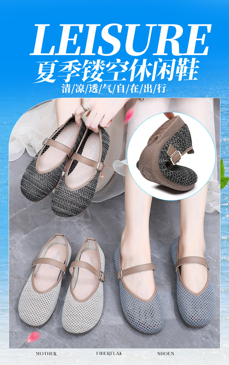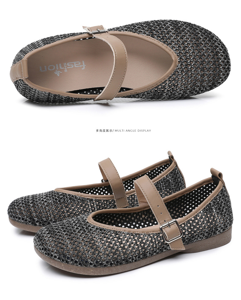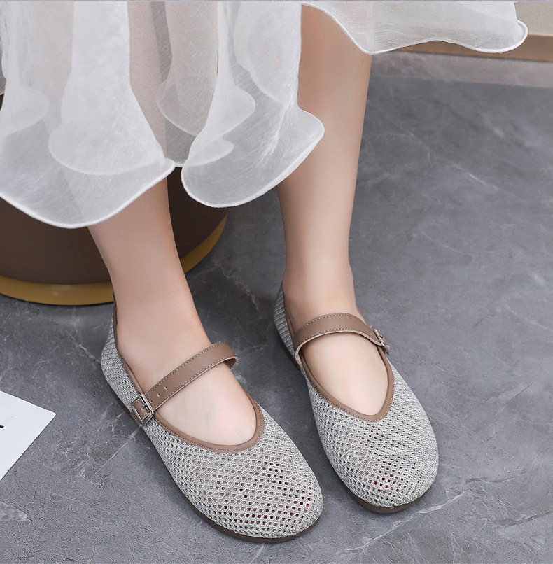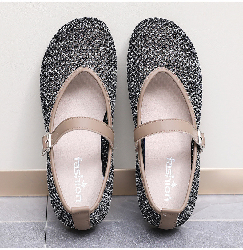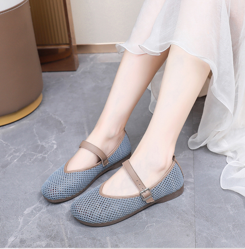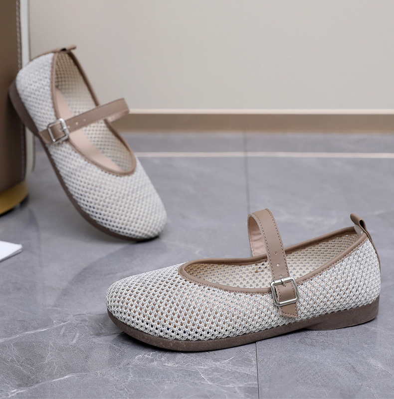 여성을위한 여름 메쉬 신발 2025 여성을위한 새로운 메리 제인 신발 통기성 부드러운 바닥 플라이 짠 메쉬 중공 Fishnet 신발스토어 가기