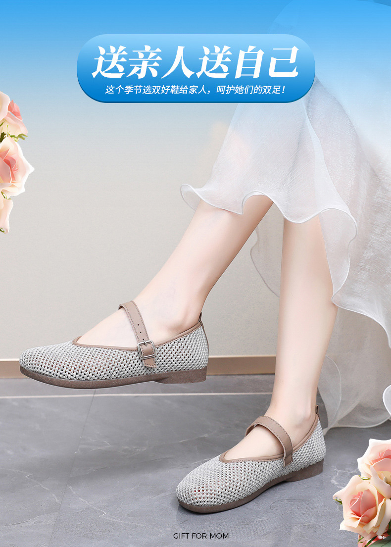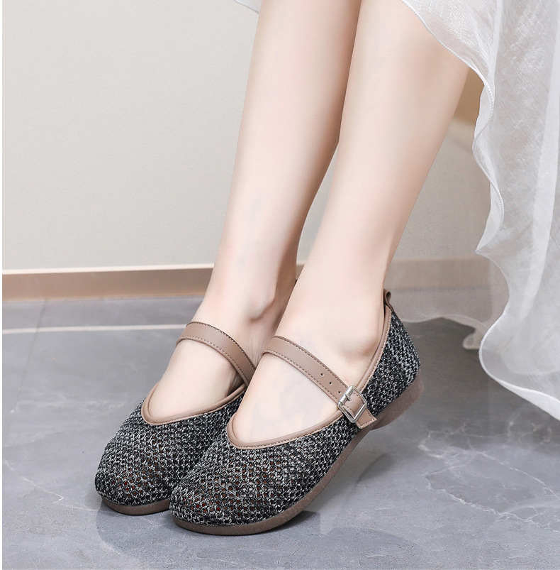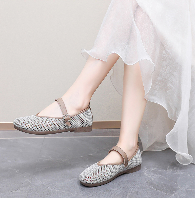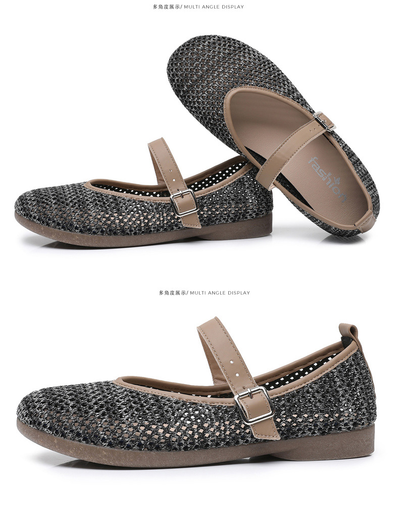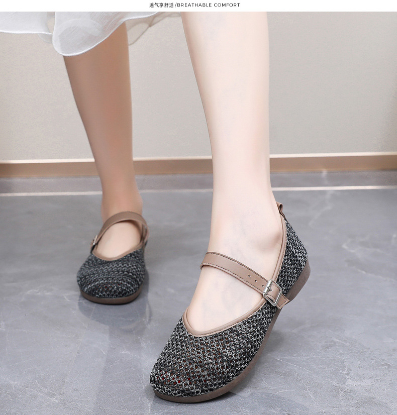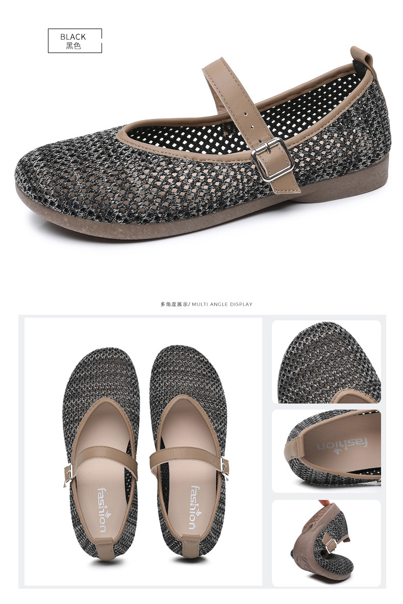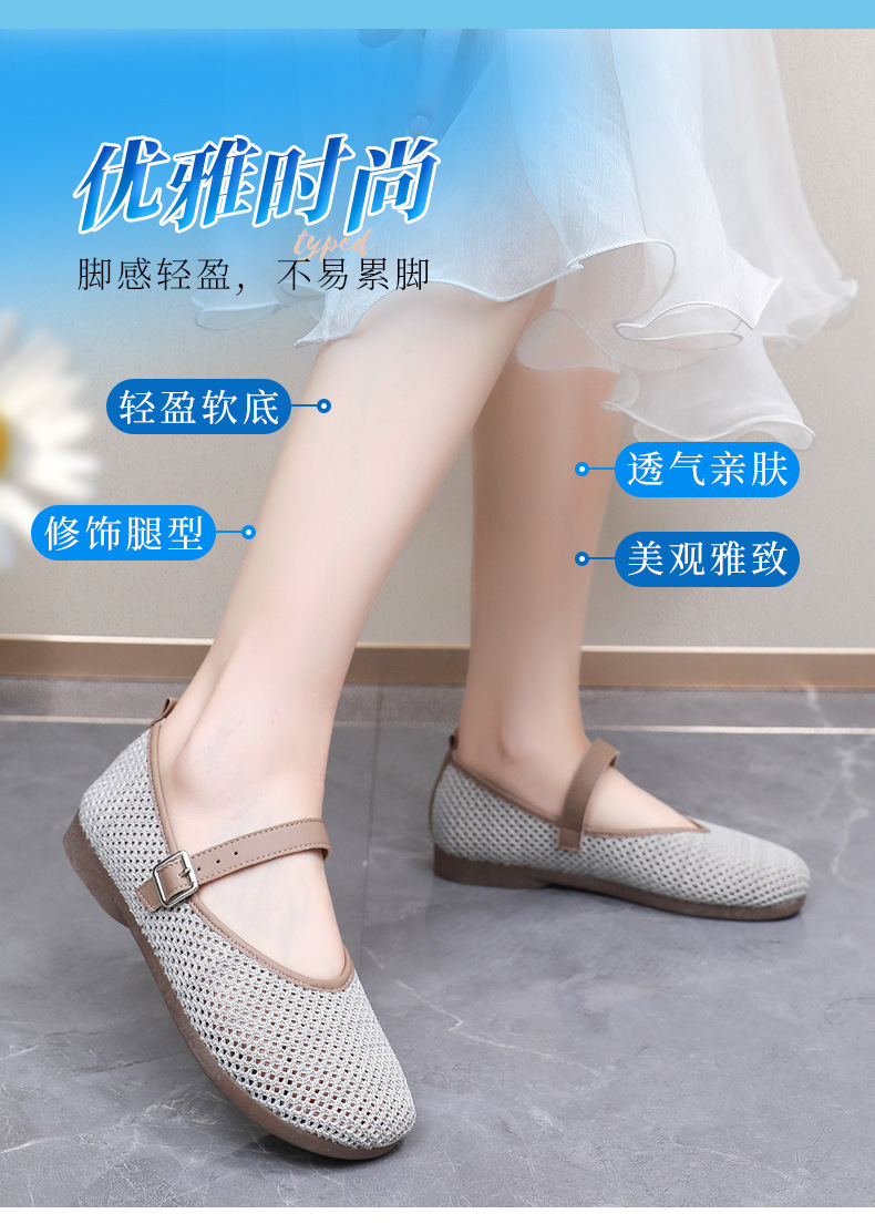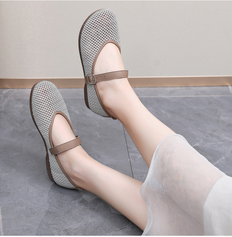 여성을위한 여름 메쉬 신발 2025 여성을위한 새로운 메리 제인 신발 통기성 부드러운 바닥 플라이 짠 메쉬 중공 Fishnet 신발스토어 가기