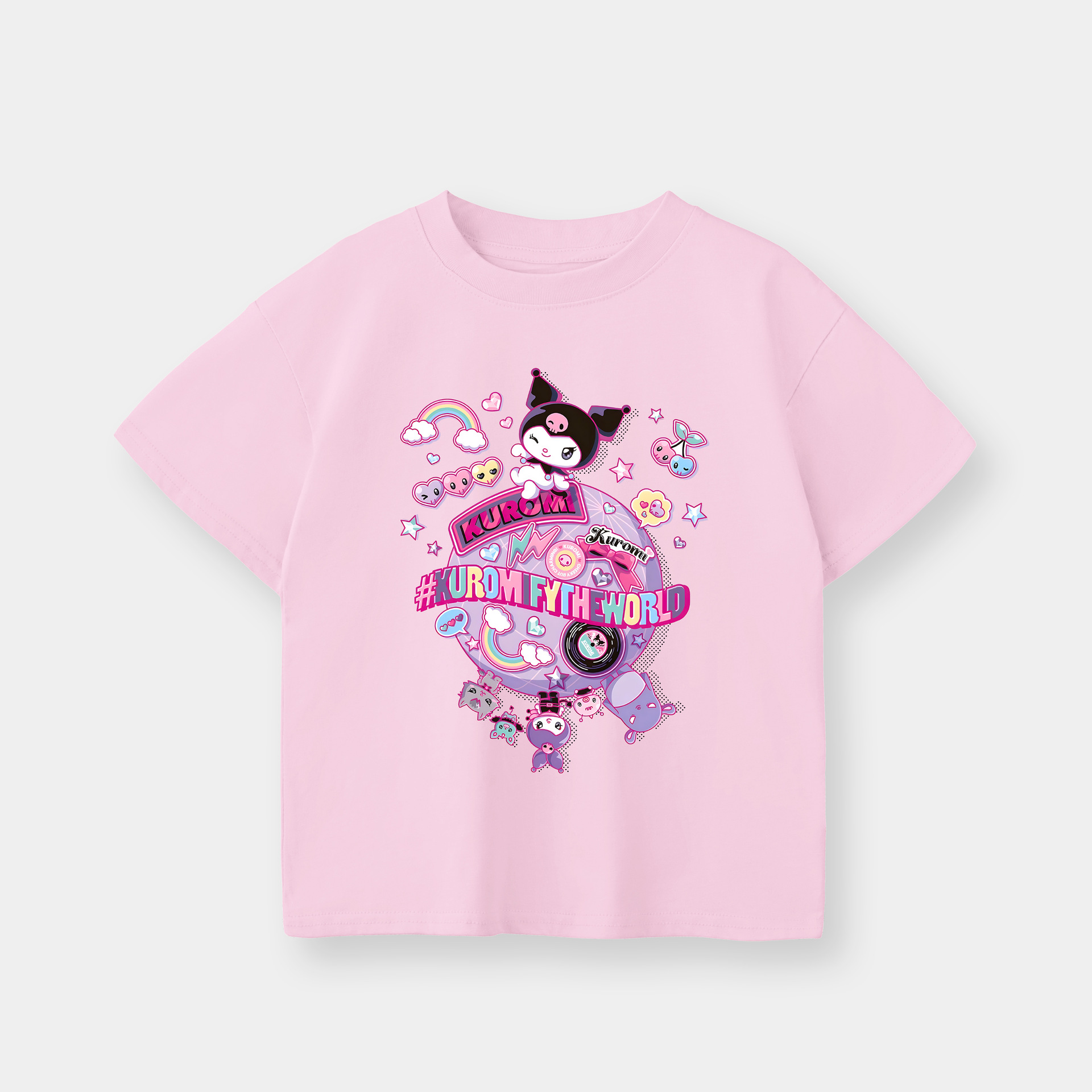 아동용 반팔 티셔츠 2025 봄 여름 여아용 쿠로미 프린트 풀오버 상의 한국 스타일 여름 신상품스토어 가기