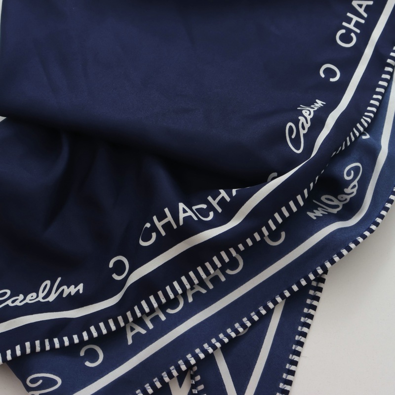 2025년 신형 소형 냉각 프렌치 컬리지 스타일 실크 스카프 대형 고급 소프트 숄 네이비 블루 화이트닝