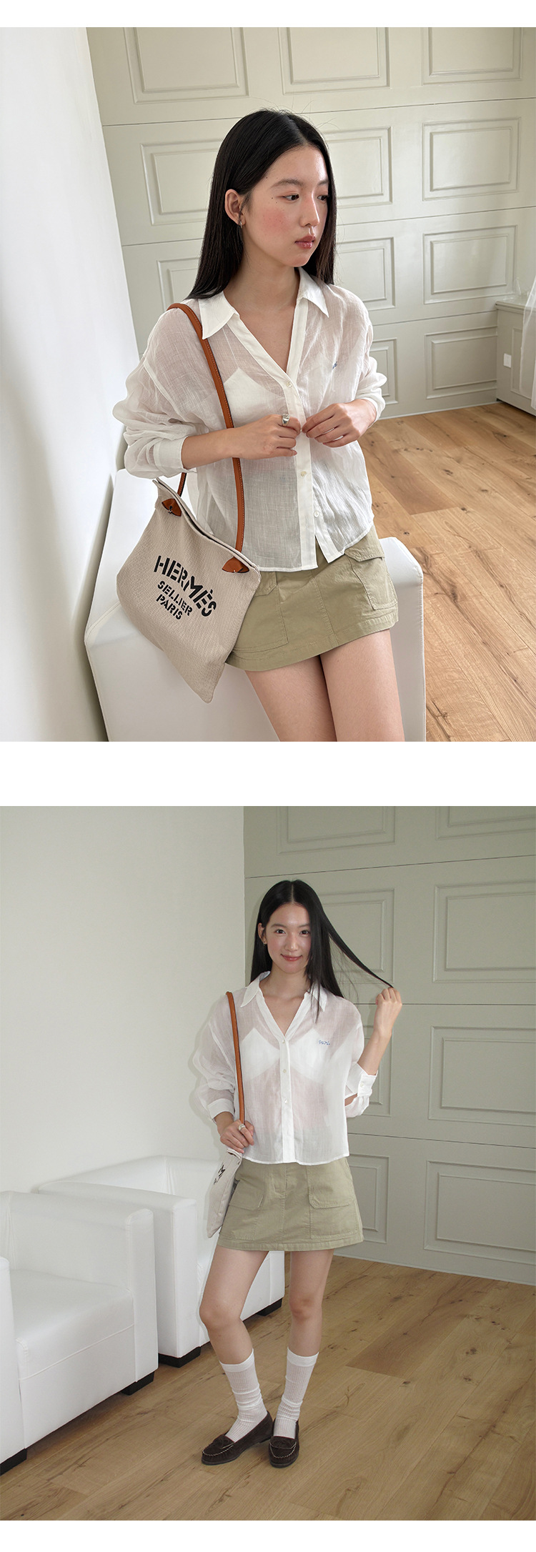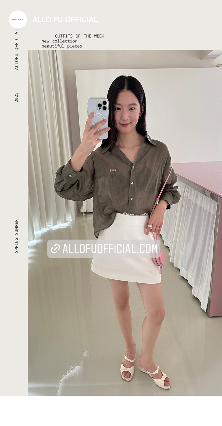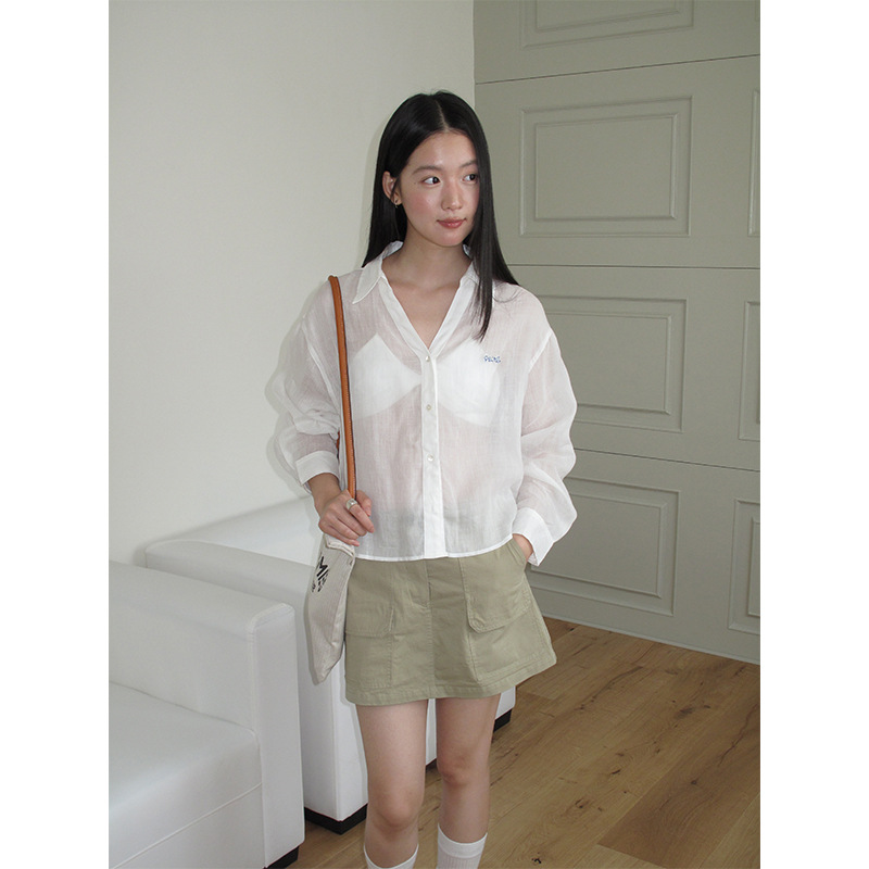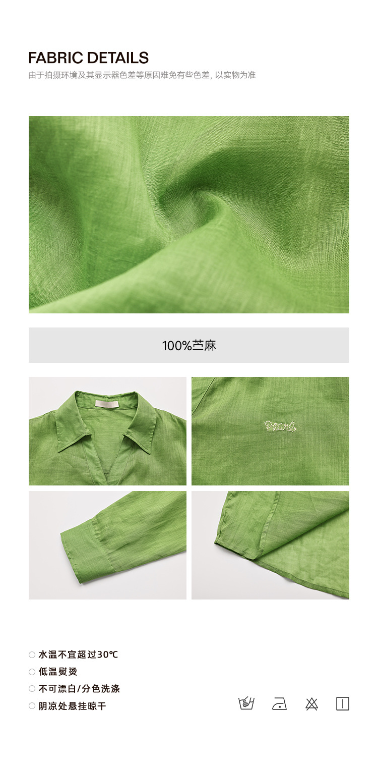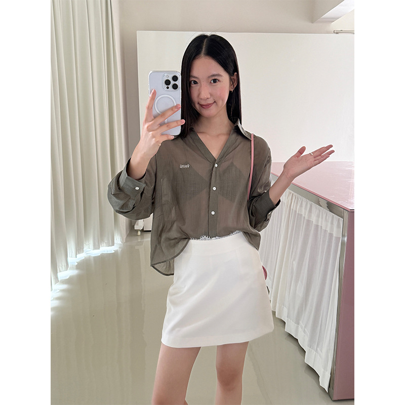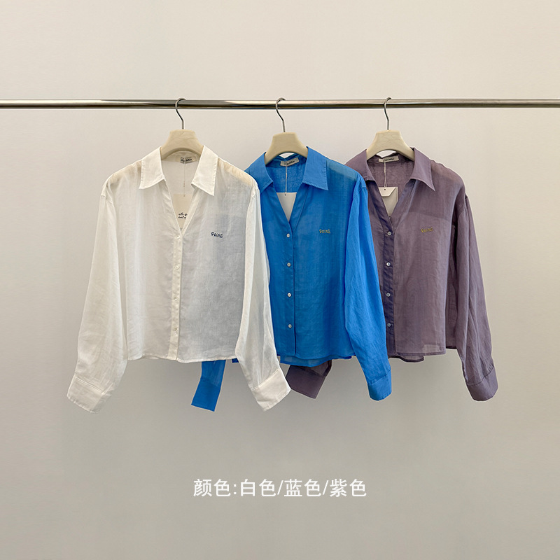 【재고정리, 환불불가】여성용 루즈핏 자수 라미 셔츠, 여름용 올드머니 스타일 심플 긴팔 셔츠, 트렌디 23359스토어 가기