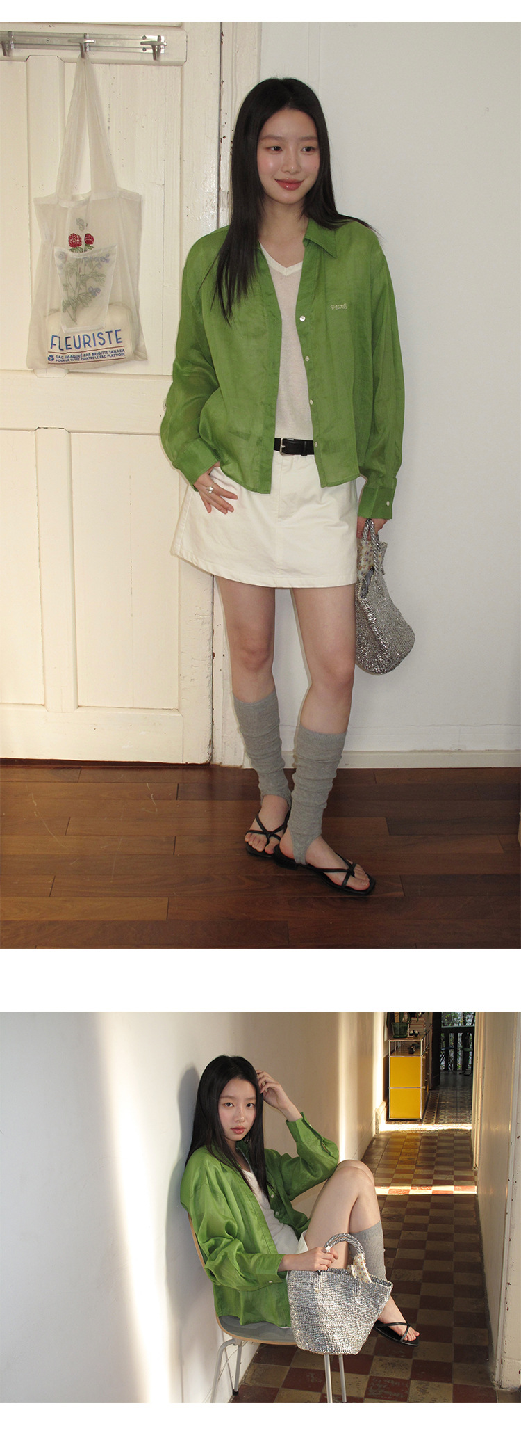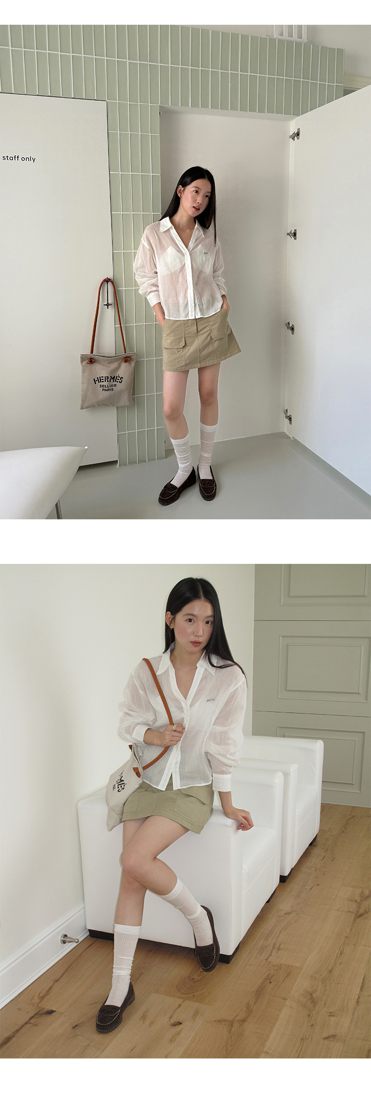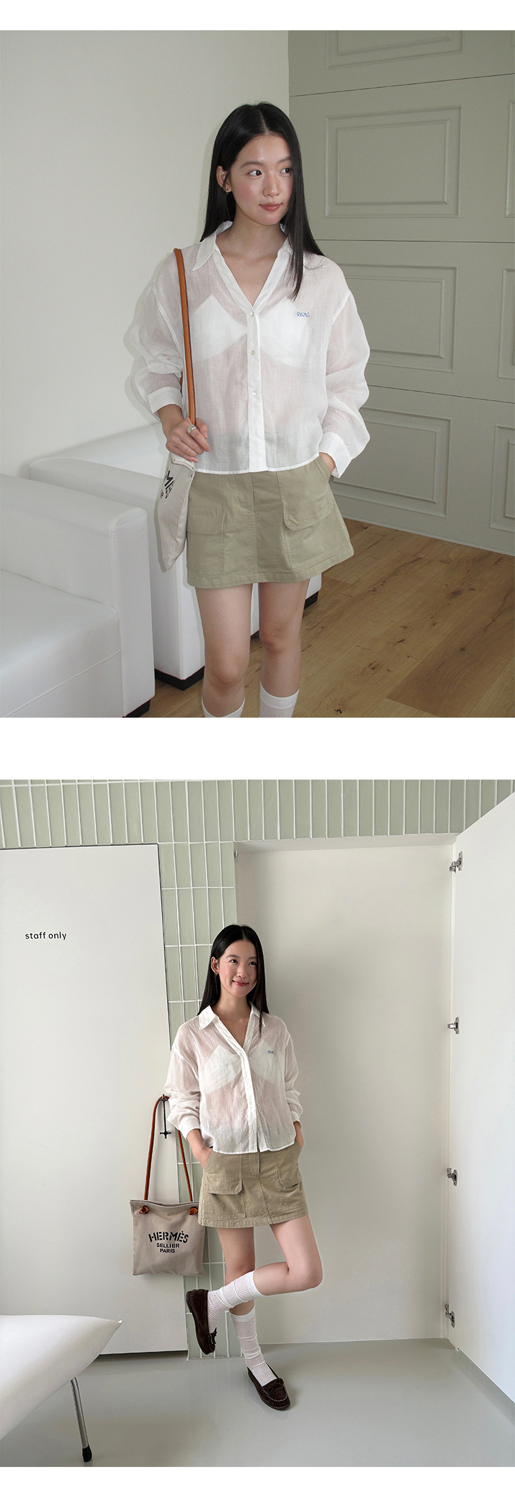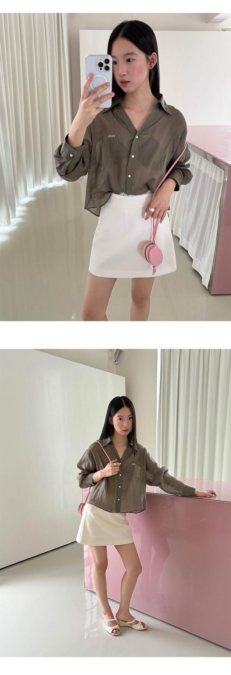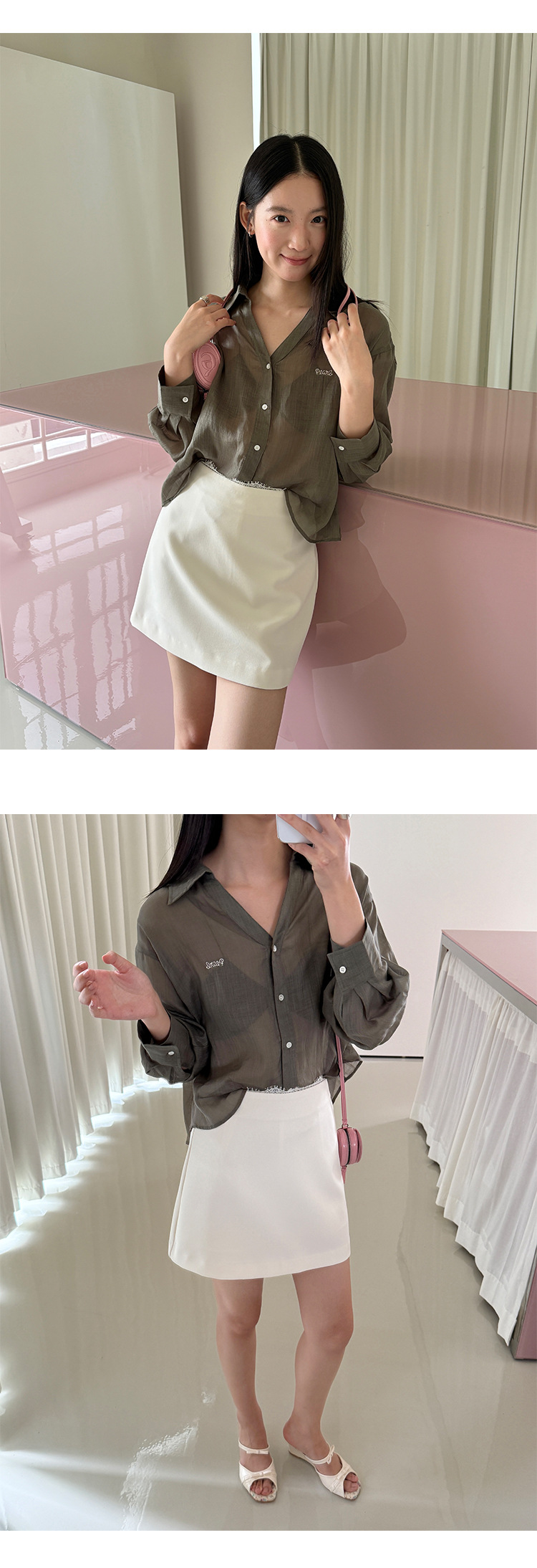 【재고정리, 환불불가】여성용 루즈핏 자수 라미 셔츠, 여름용 올드머니 스타일 심플 긴팔 셔츠, 트렌디 23359스토어 가기