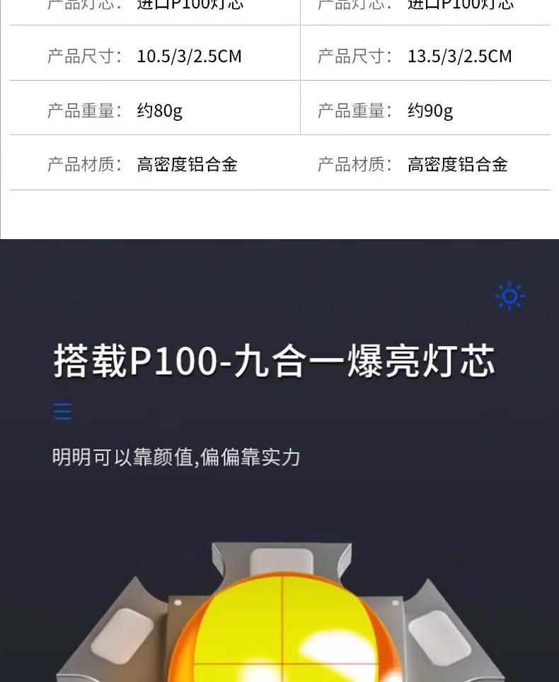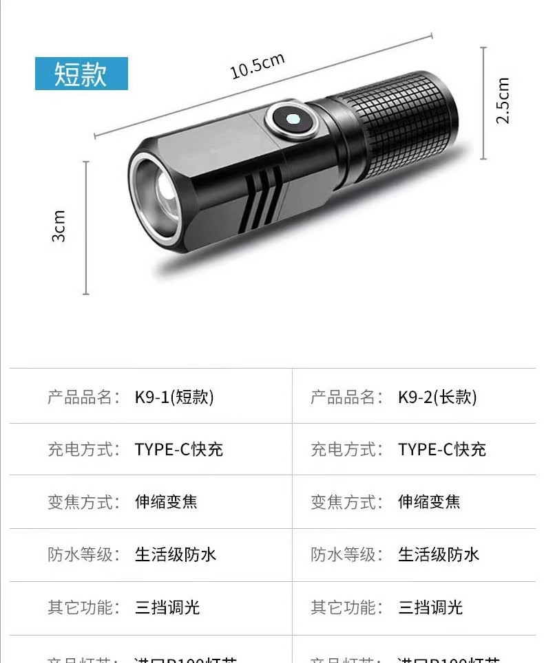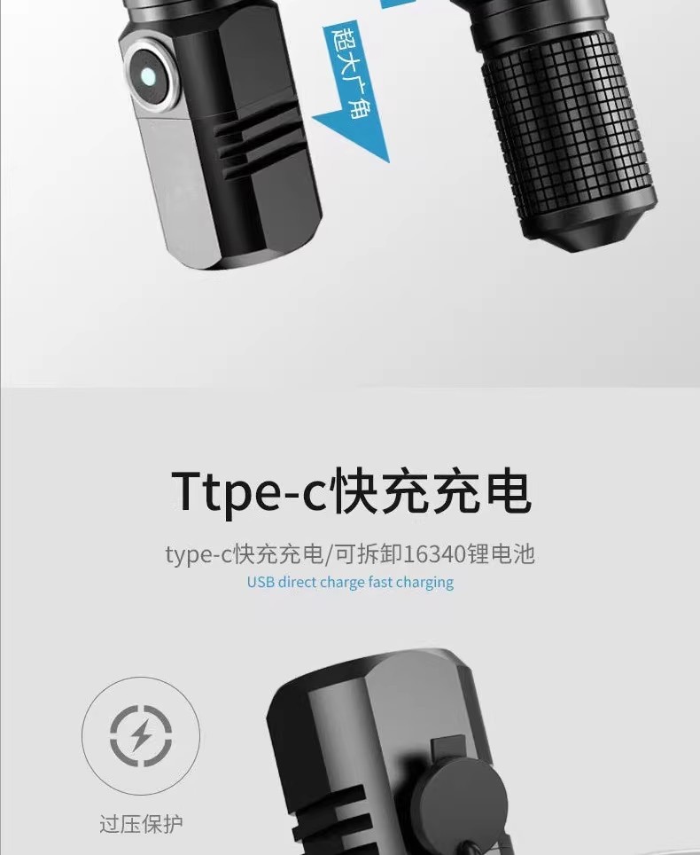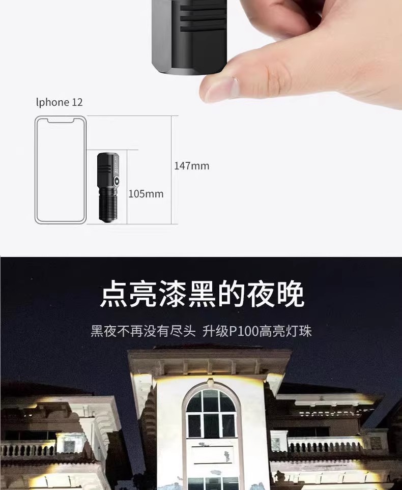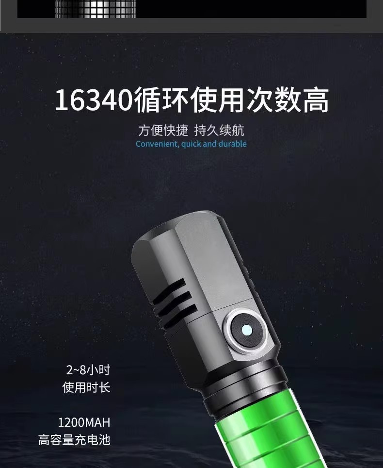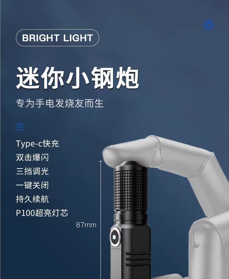 18650 강한 빛 손전등 16340 미니 슈퍼 밝은 긴 내구성 P100 수입 심지 야외 홈 조명