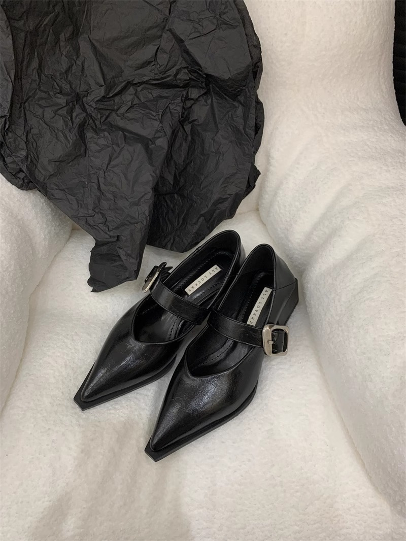 여성을위한 영국 스타일 뾰족한 발가락 메리 제인 신발 2024 봄과 여름 새로운 한국 스타일 패션 복고풍 얕은 입 두꺼운 굽 작은 가죽 신발스토어 가기