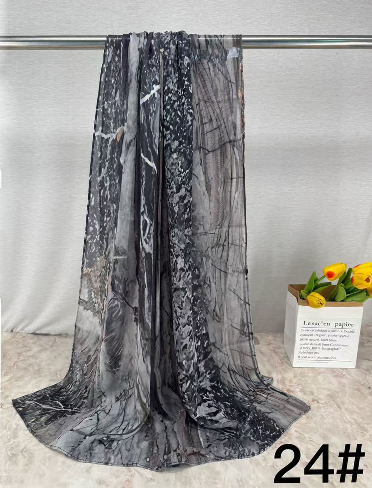 국경을 넘나드는 신제품, 밝은 색상의 잉크 컬러 인쇄 레이온 모달 스카프, 부드럽고 통기성이 뛰어난 실크 스카프, 이슬람 히잡스토어 가기