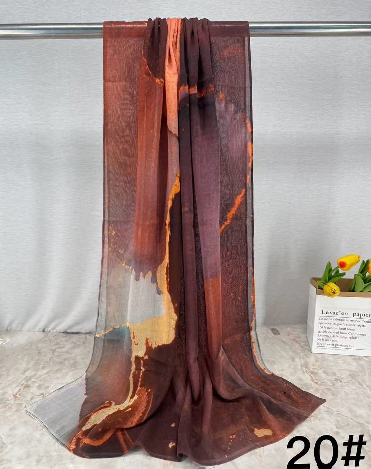 국경을 넘나드는 신제품, 밝은 색상의 잉크 컬러 인쇄 레이온 모달 스카프, 부드럽고 통기성이 뛰어난 실크 스카프, 이슬람 히잡