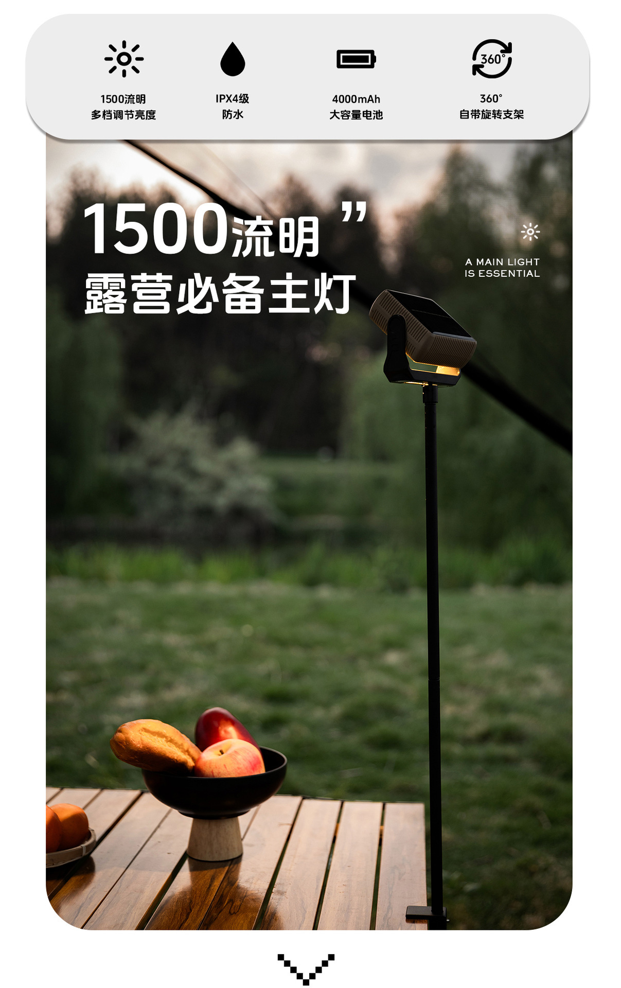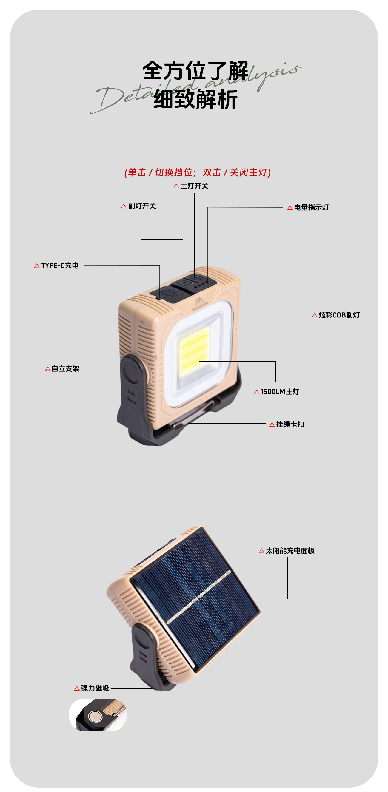 Mountain Guest 정품 태양열 다기능 캠핑 조명 외부 조명 휴대용 서치 야외 슈퍼 밝은 휴대용 서치스토어 가기