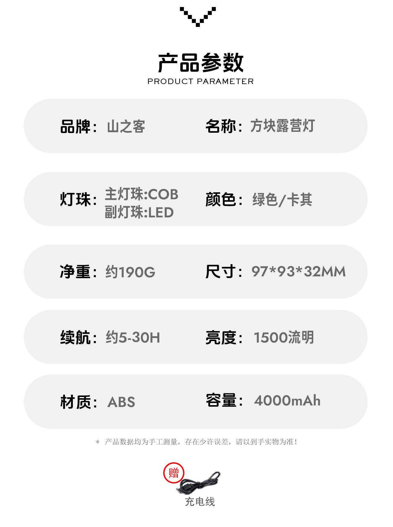 • 사각 캠핑 라이트 카키