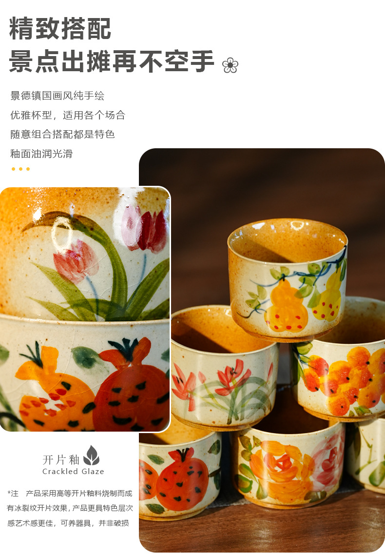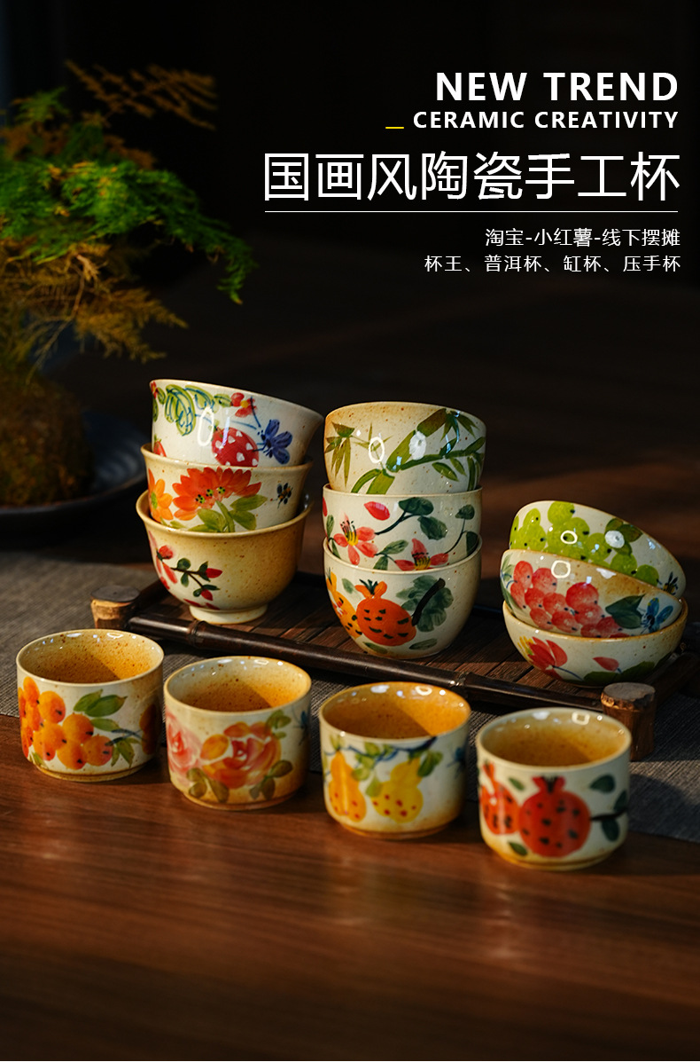 경덕진 언더글레이즈 다채로운 손으로 그린 찻잔 개인 컵 마스터 컵 게스트 컵 싱글 컵 주전자 푸얼 컵 세라믹 차 세트스토어 가기