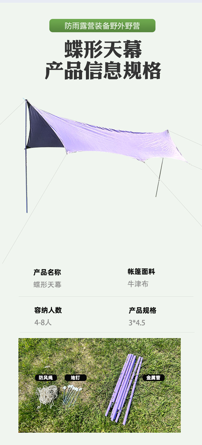 비닐 캐노피 캠핑 텐트 팔각형 천막 편리한 커튼 텐트 제조 업체 도매 보라색 나비 캐노피