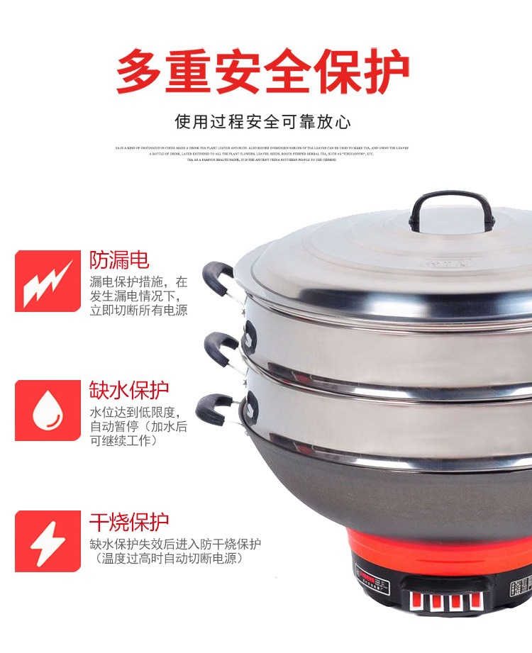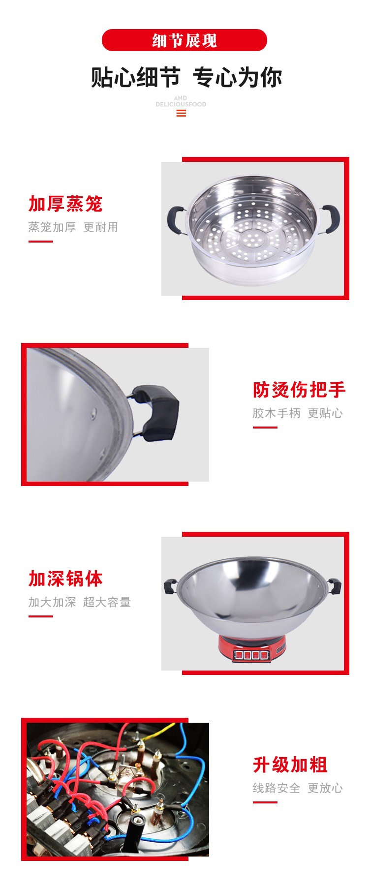 • 50개의 강철 냄비 단일 대나무 케이지는 12-25명에게 적합합니다. 3000와트