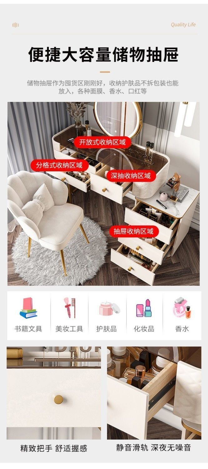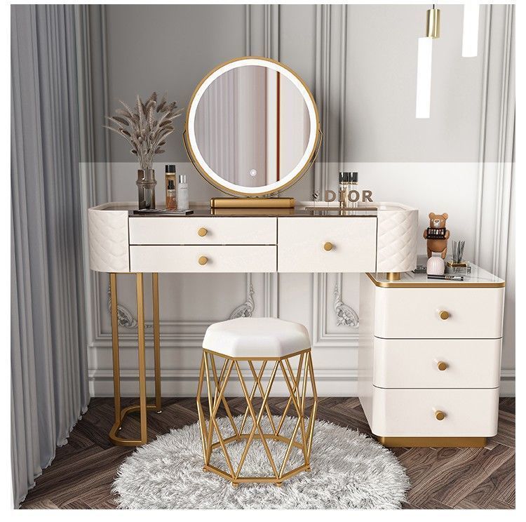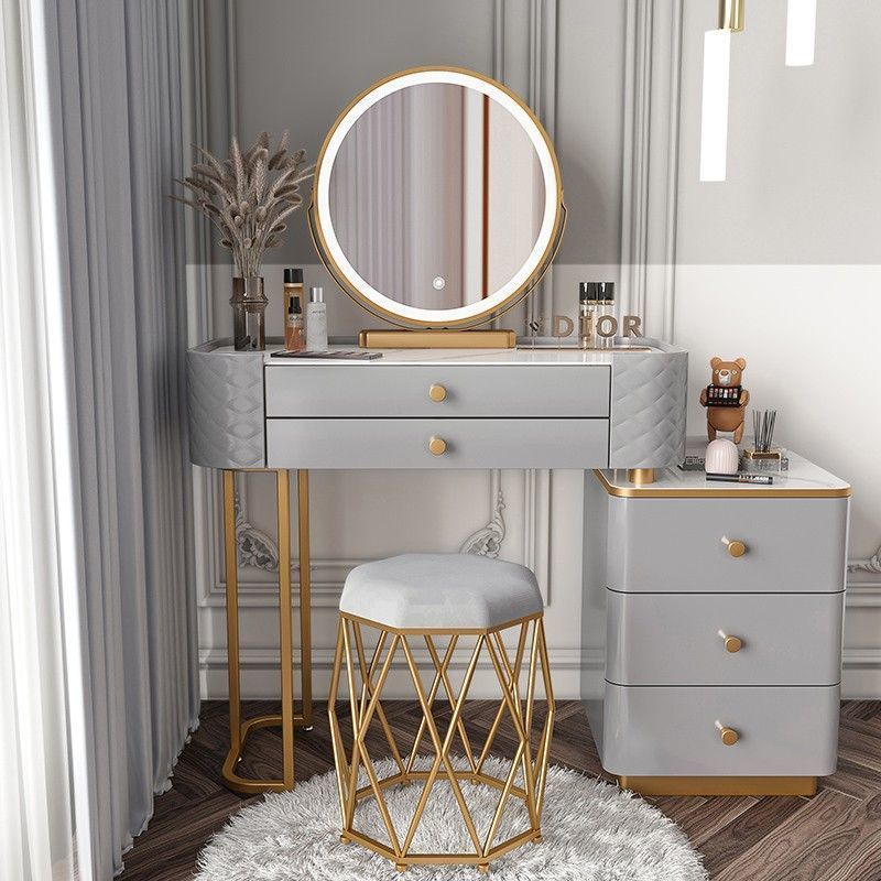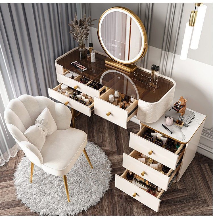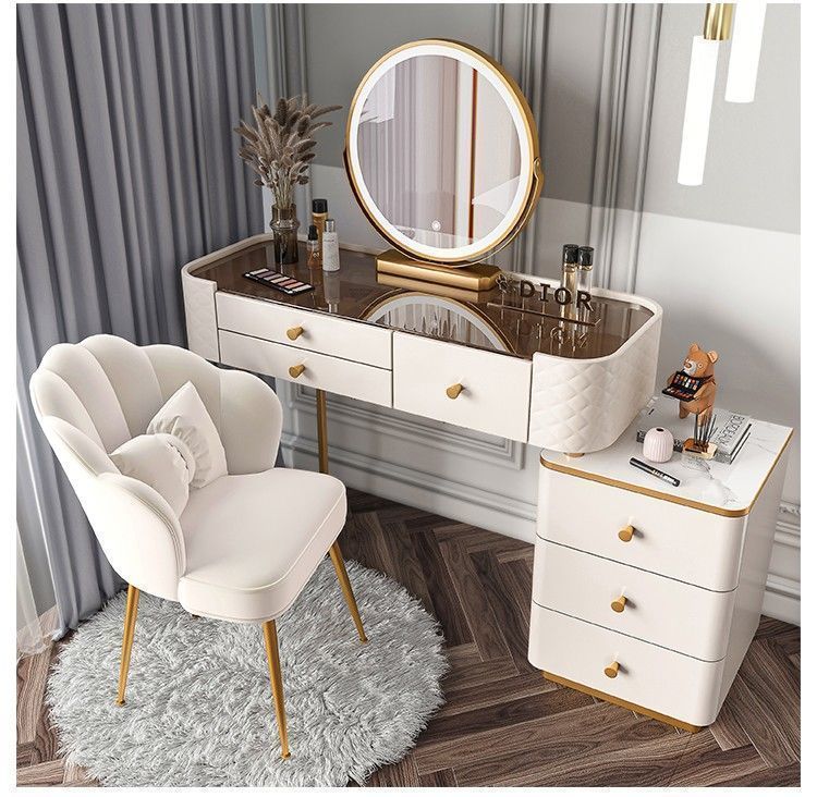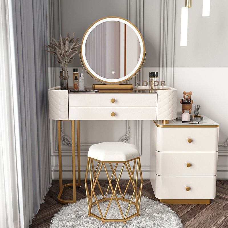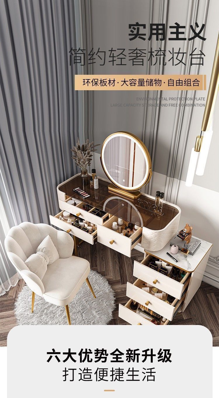 현대적인 미니멀리스트 침실 화장대 인터넷 연예인 라이트 럭셔리 북유럽 스타일 화장대 유리 화장대 보관 캐비닛 통합 테이블