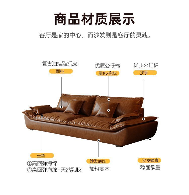 새로운 인터넷 연예인 이탈리안 라이트 럭셔리 범선 소파 오일 왁스 가죽 임대 주택 홈 거실 침실 통합 일자형스토어 가기