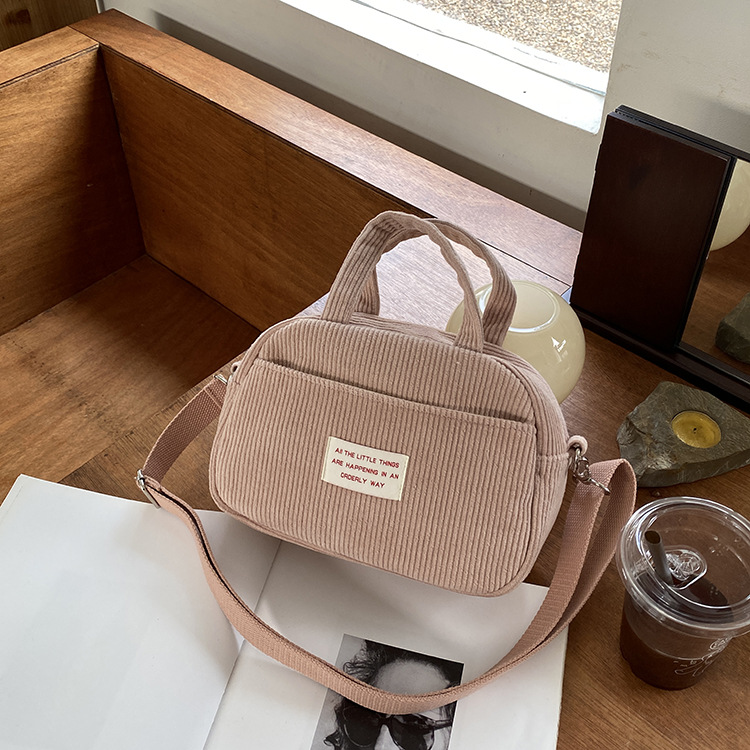 크로스보더 스몰 스퀘어백 숄더백 미니 한국식 볼링백 다용도 통근 코듀로이 크로스백스토어 가기