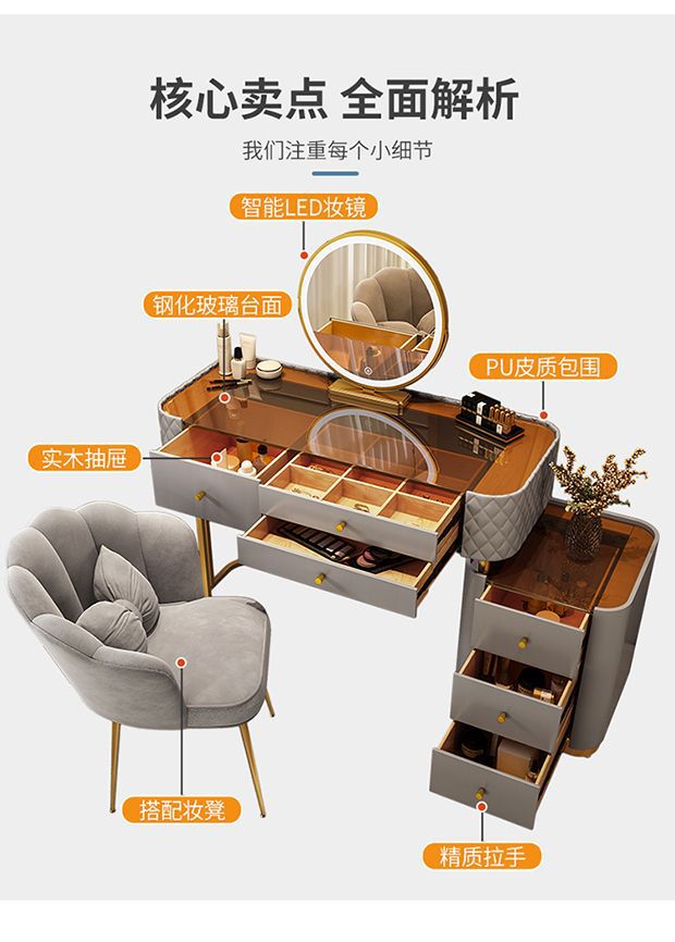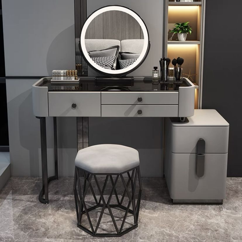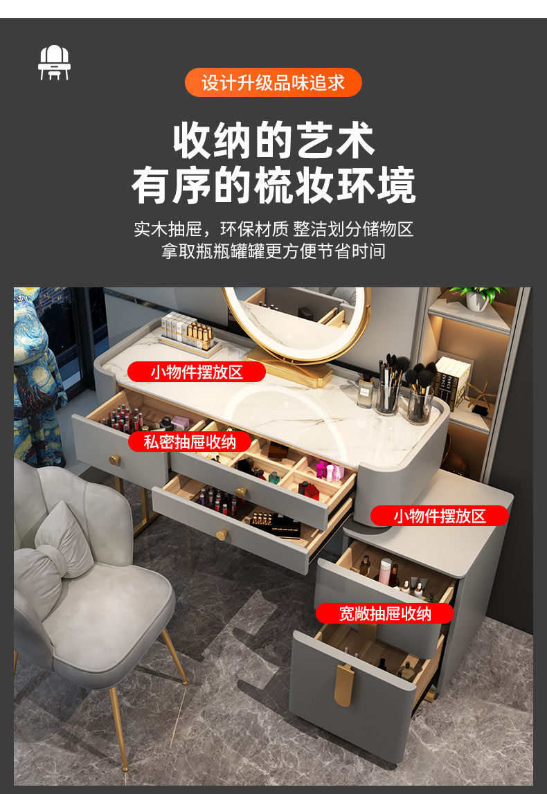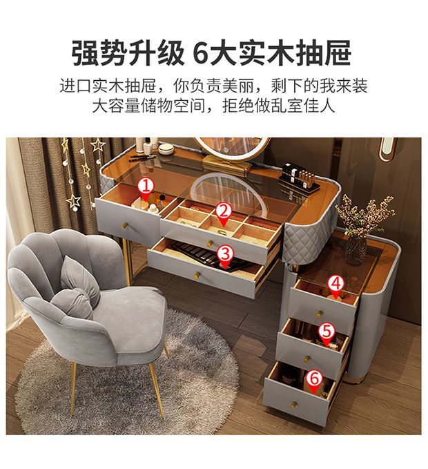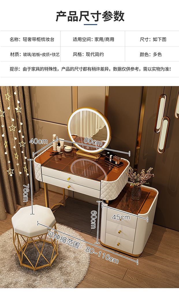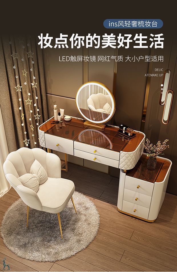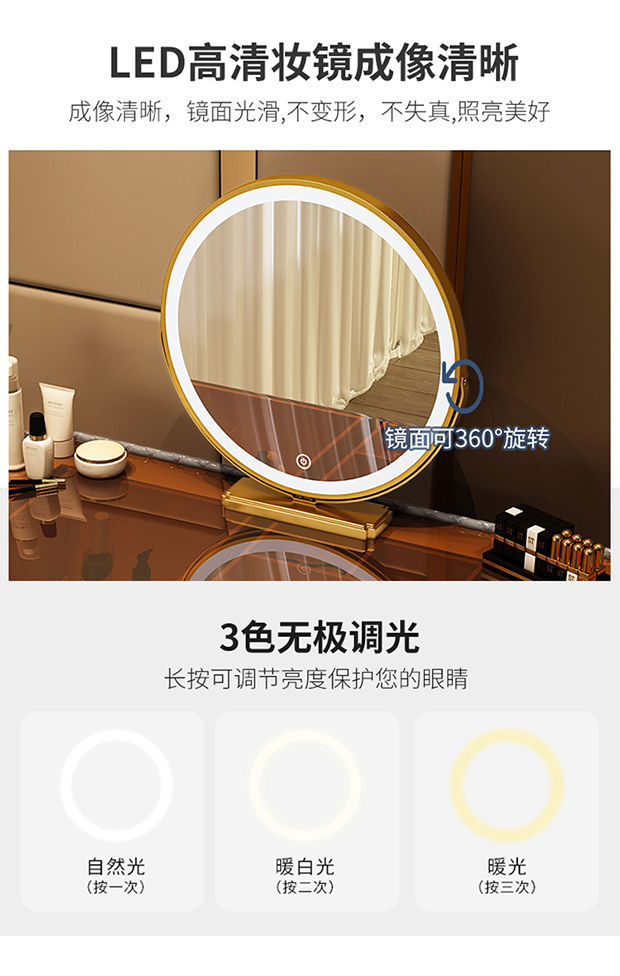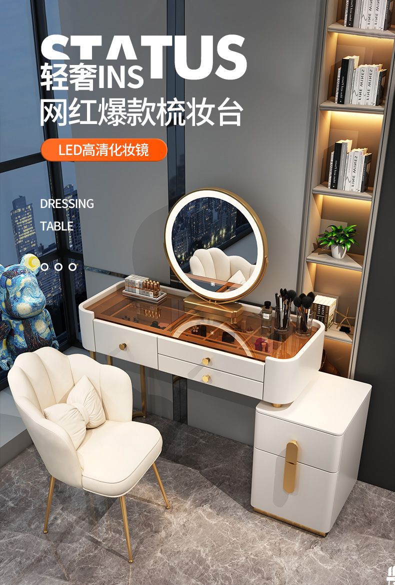 조명이 있는 가벼운 고급 침실 화장대 거울 새로운 현대적인 간단한 화장대 북유럽 스타일 인터넷 연예인 작은 아파트스토어 가기