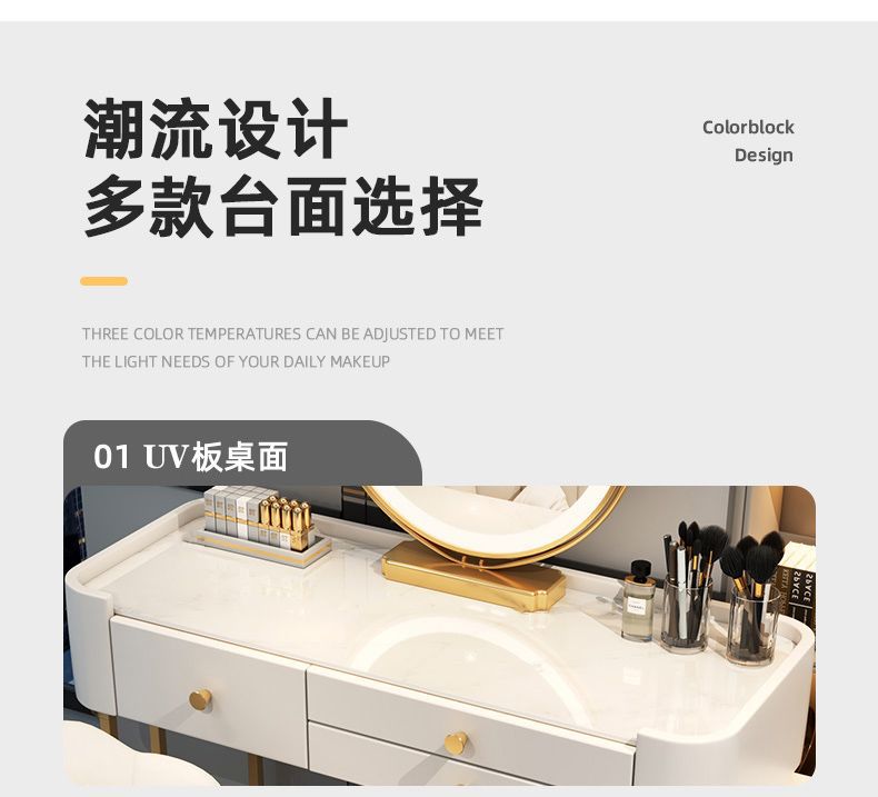 • 80.8cm UV 테이블 + 서랍 2개 + 거울 + 등받이 의자