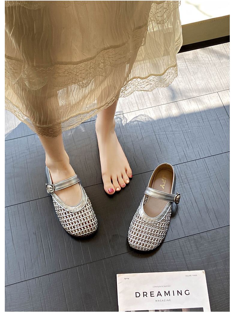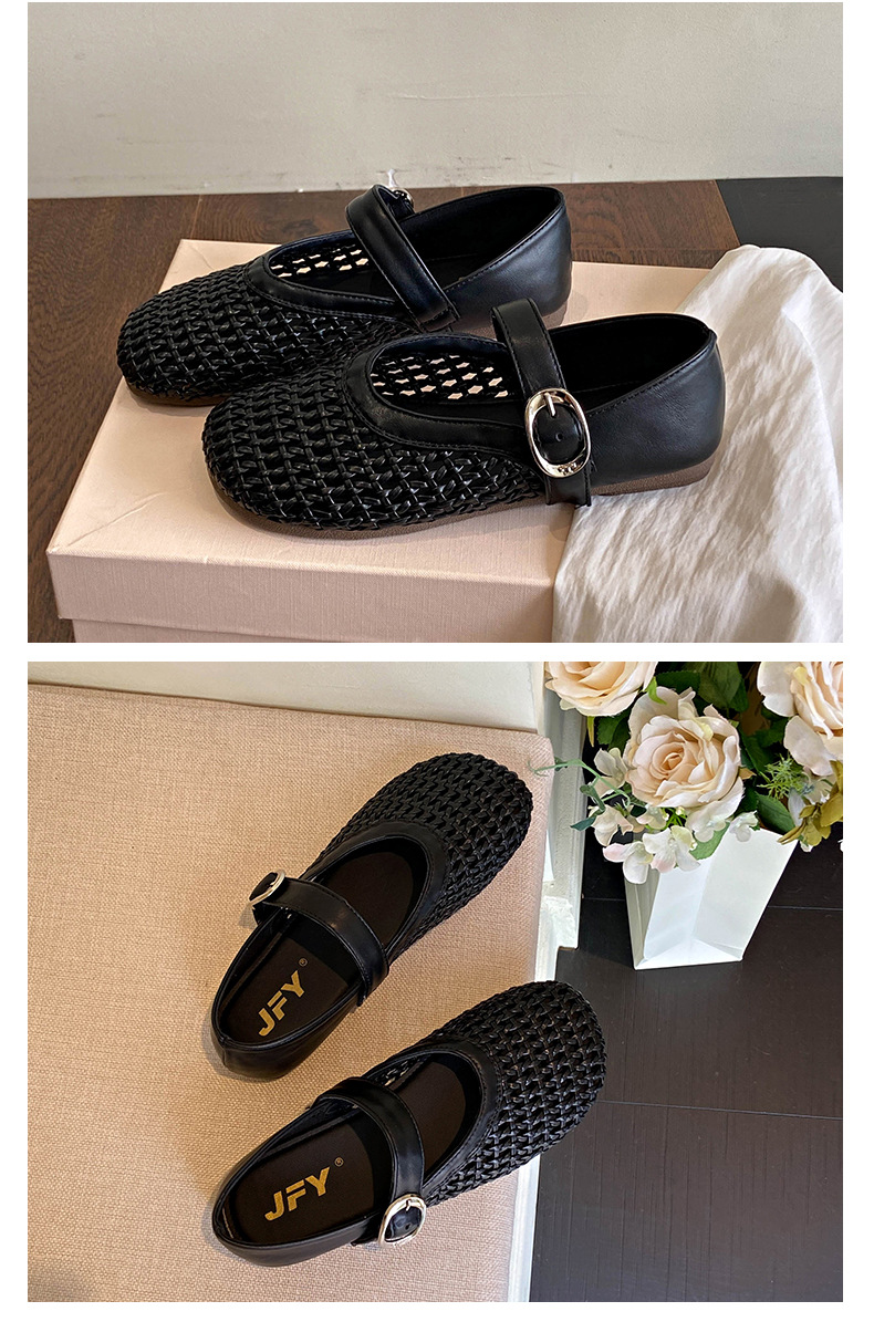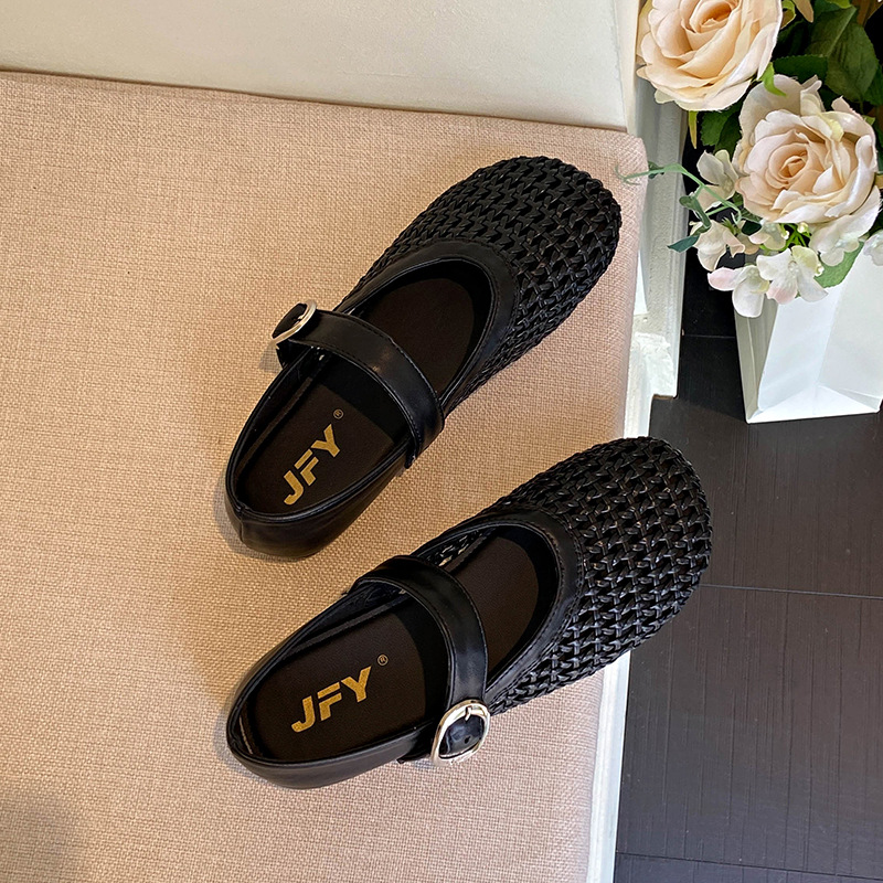 여성을위한 레트로 중공 짠 메리 제인 신발 2025 봄 새로운 다목적 버클 신발 플랫 바닥 구멍 신발스토어 가기