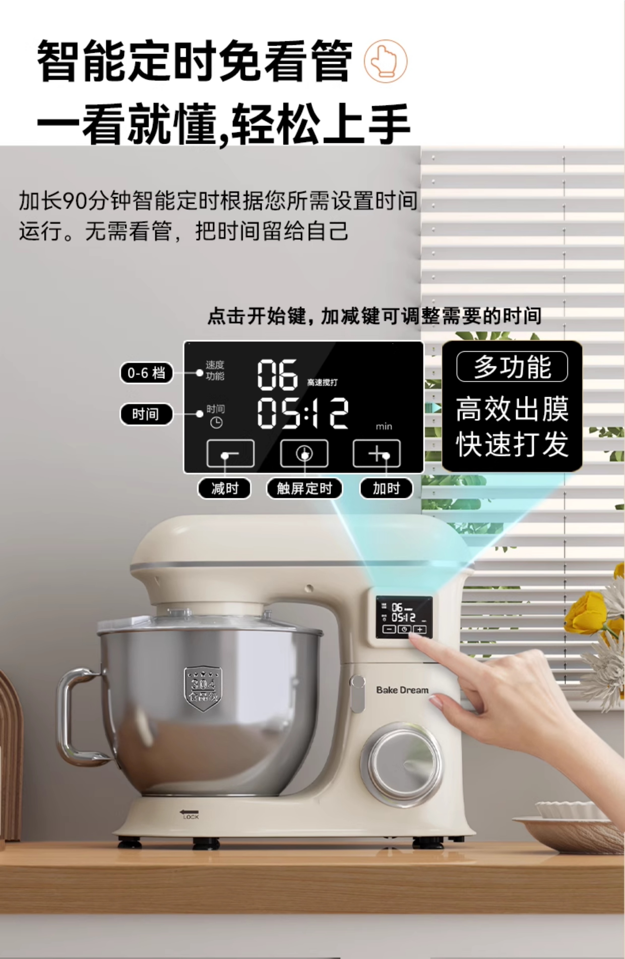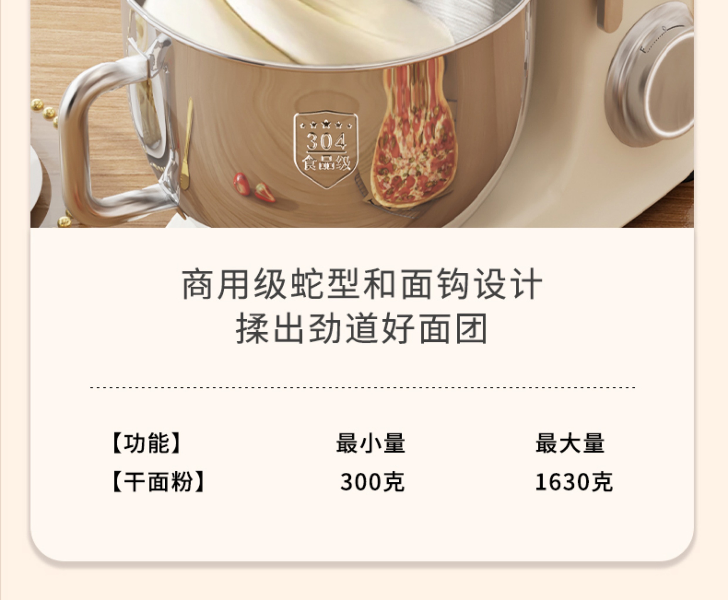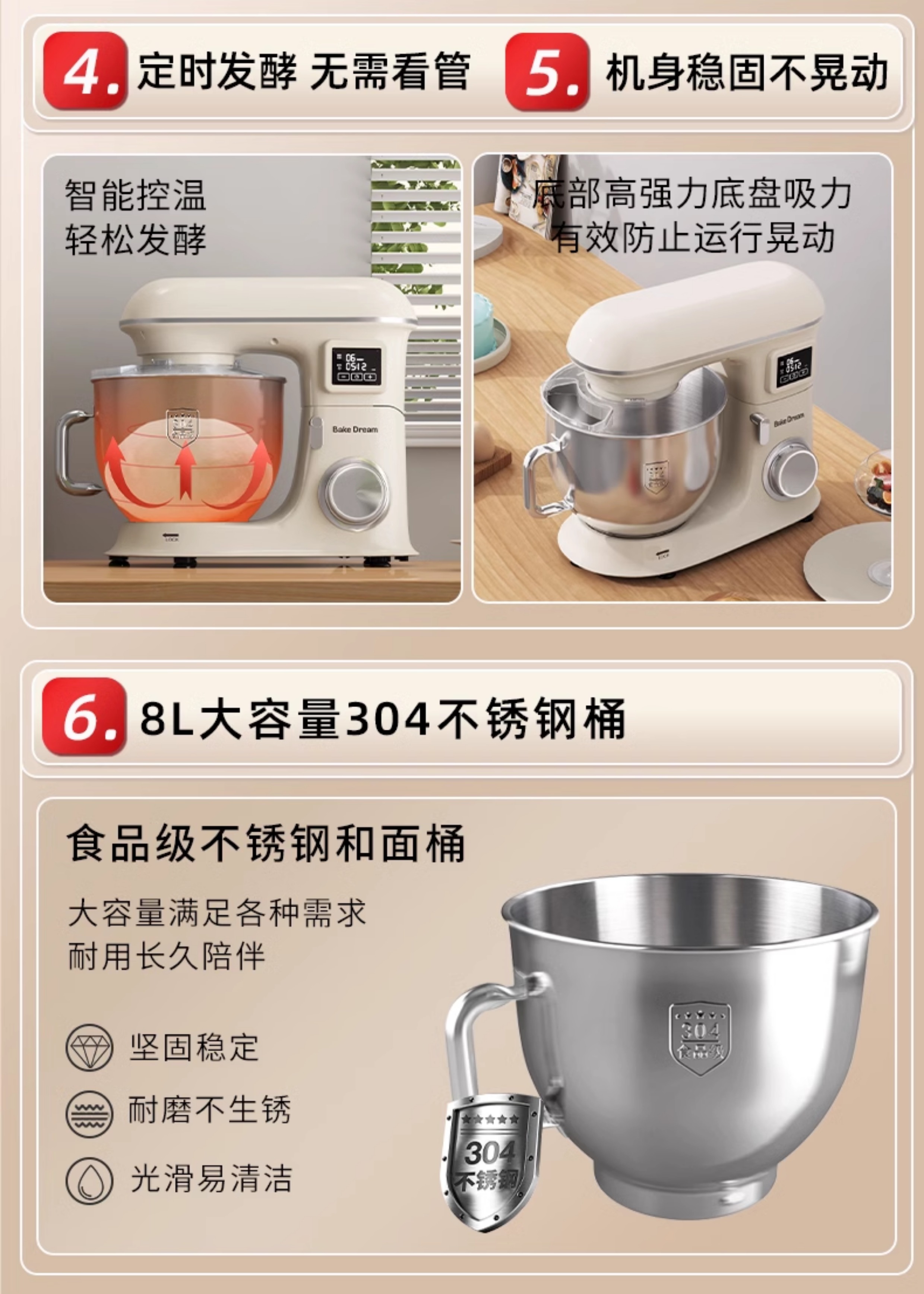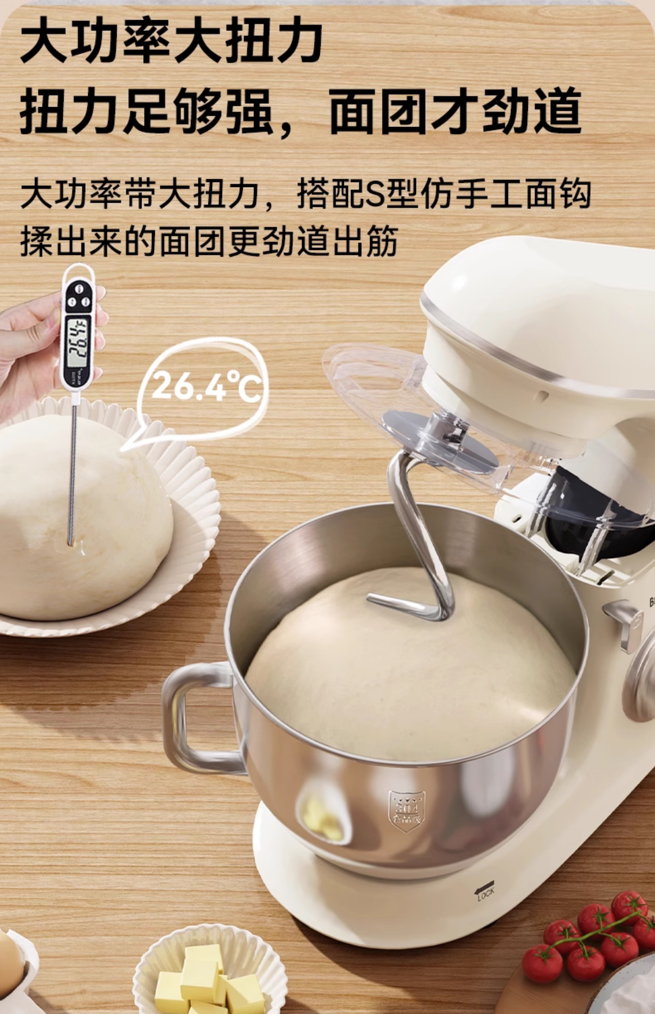 • 8L 업그레이드 버전 상업용 S 스네이크 후크 + 편리한 손잡이 [반죽 시간 조절 + 발효 + 평생 보증 + 흑색 화약 방지 디자인 추가] 1500W 베이지