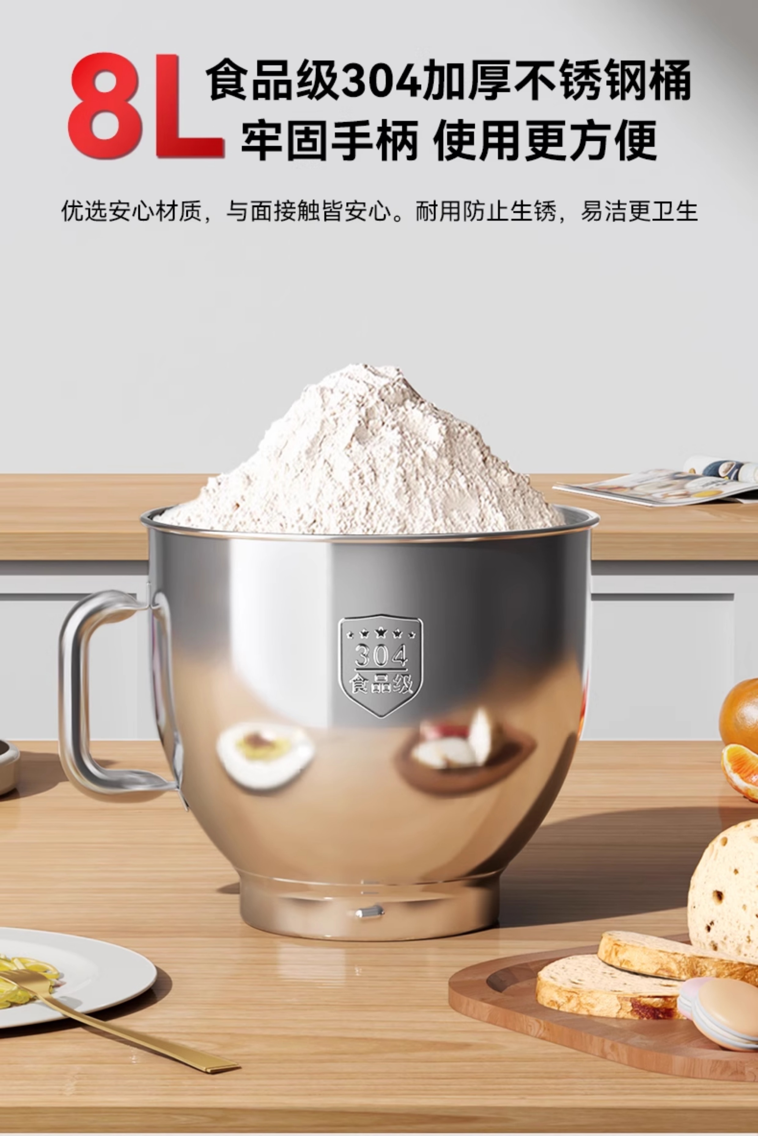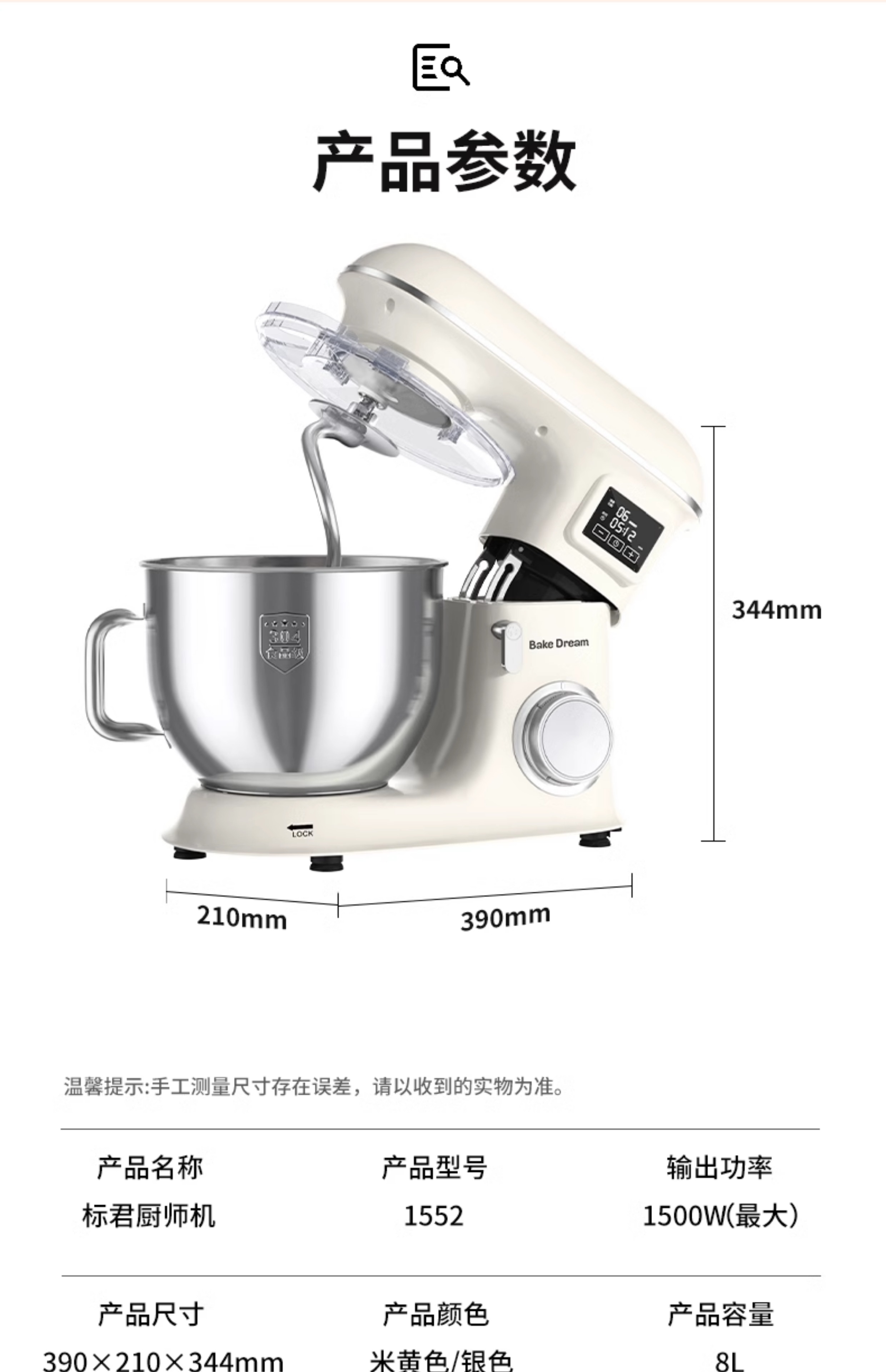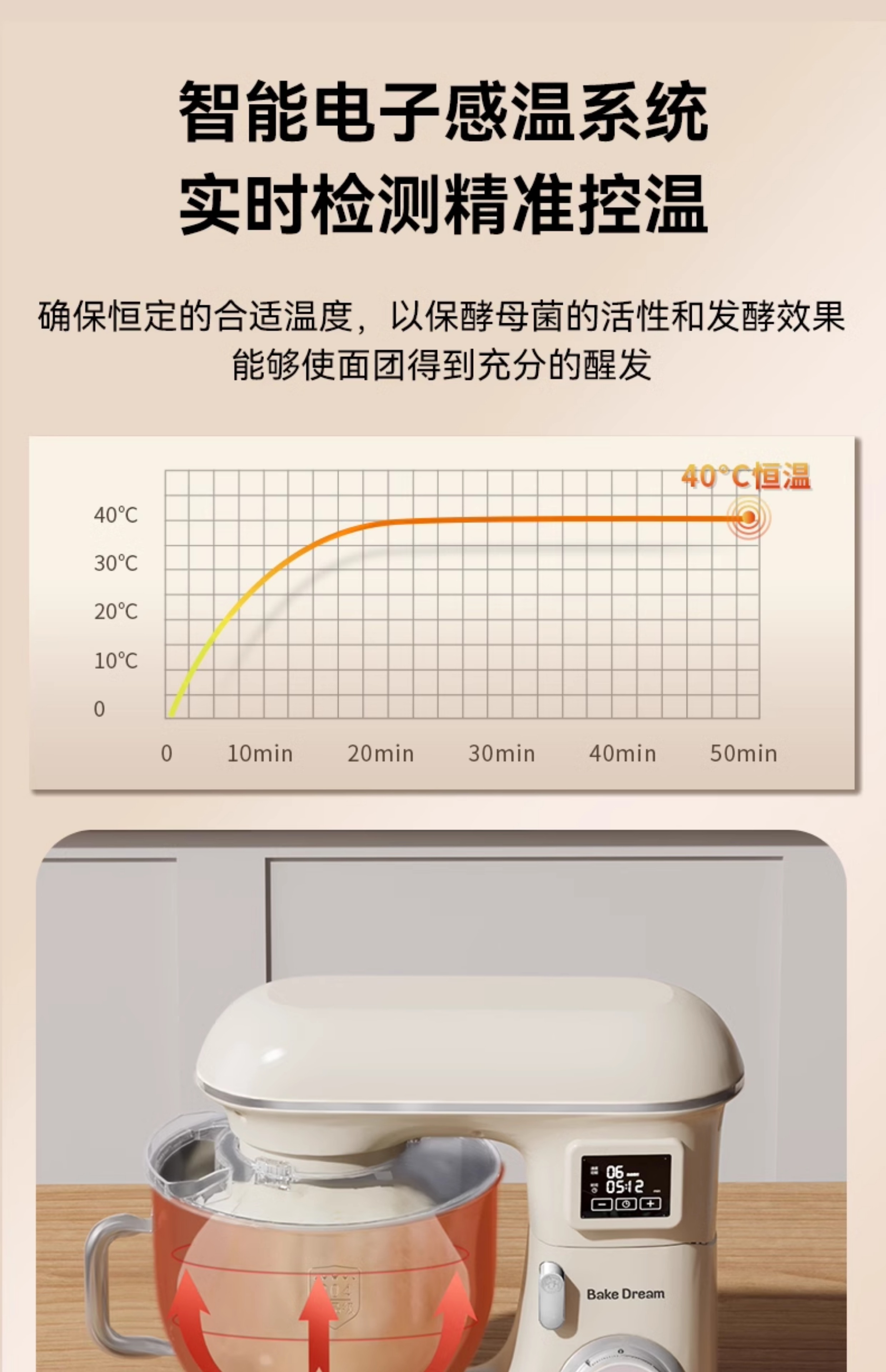 • 8L 업그레이드 버전 상업용 S 스네이크 후크 + 편리한 손잡이 [반죽 시간 조절 + 발효 + 평생 보증 + 흑색 화약 방지 디자인 추가] 1500W 베이지