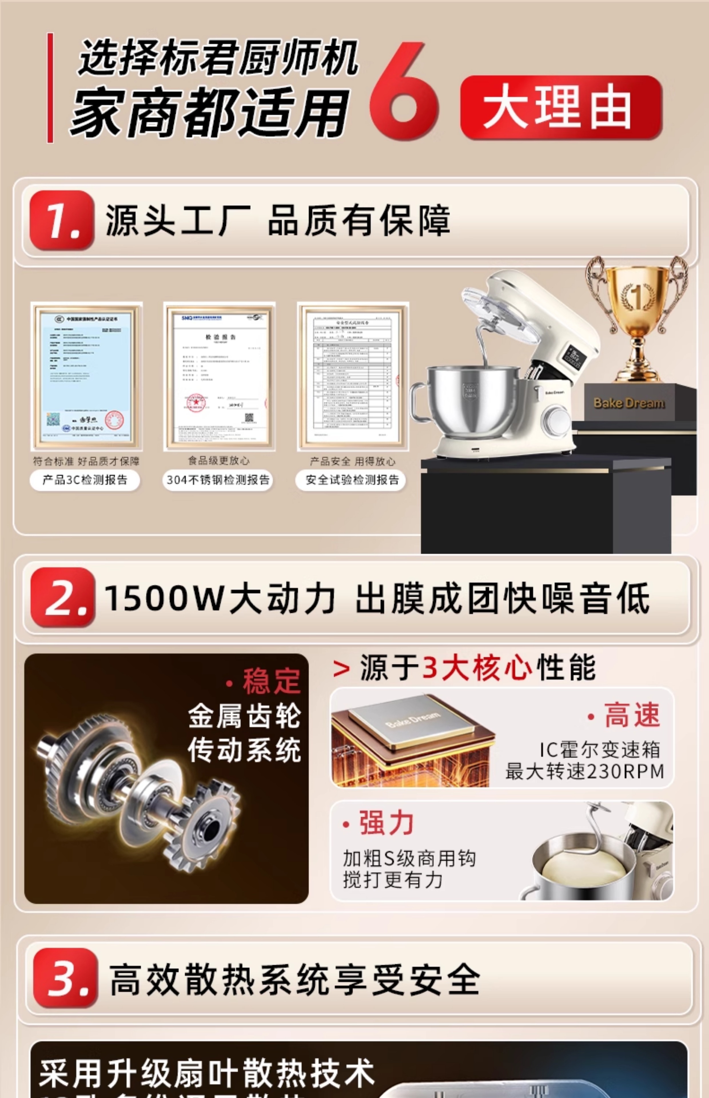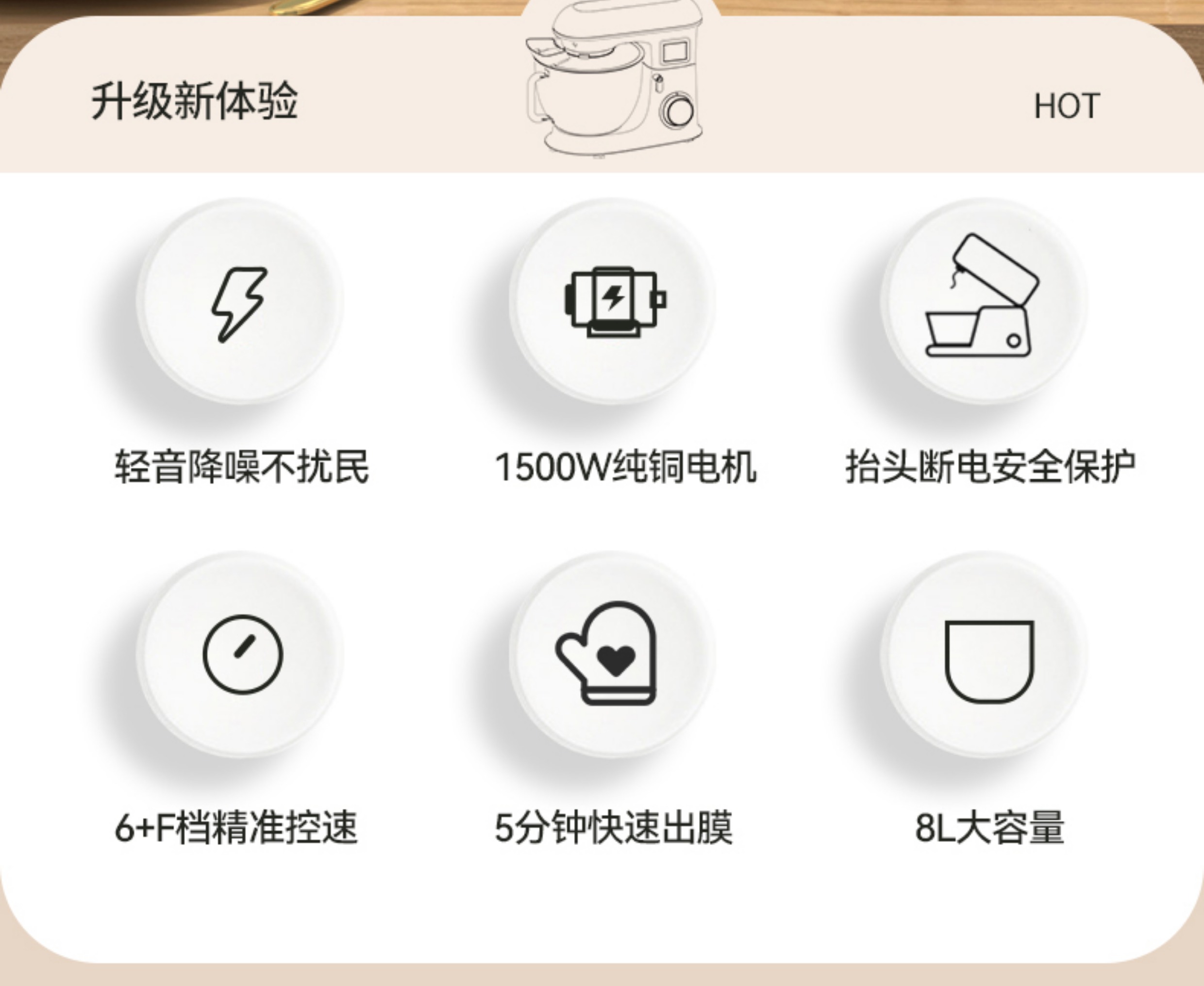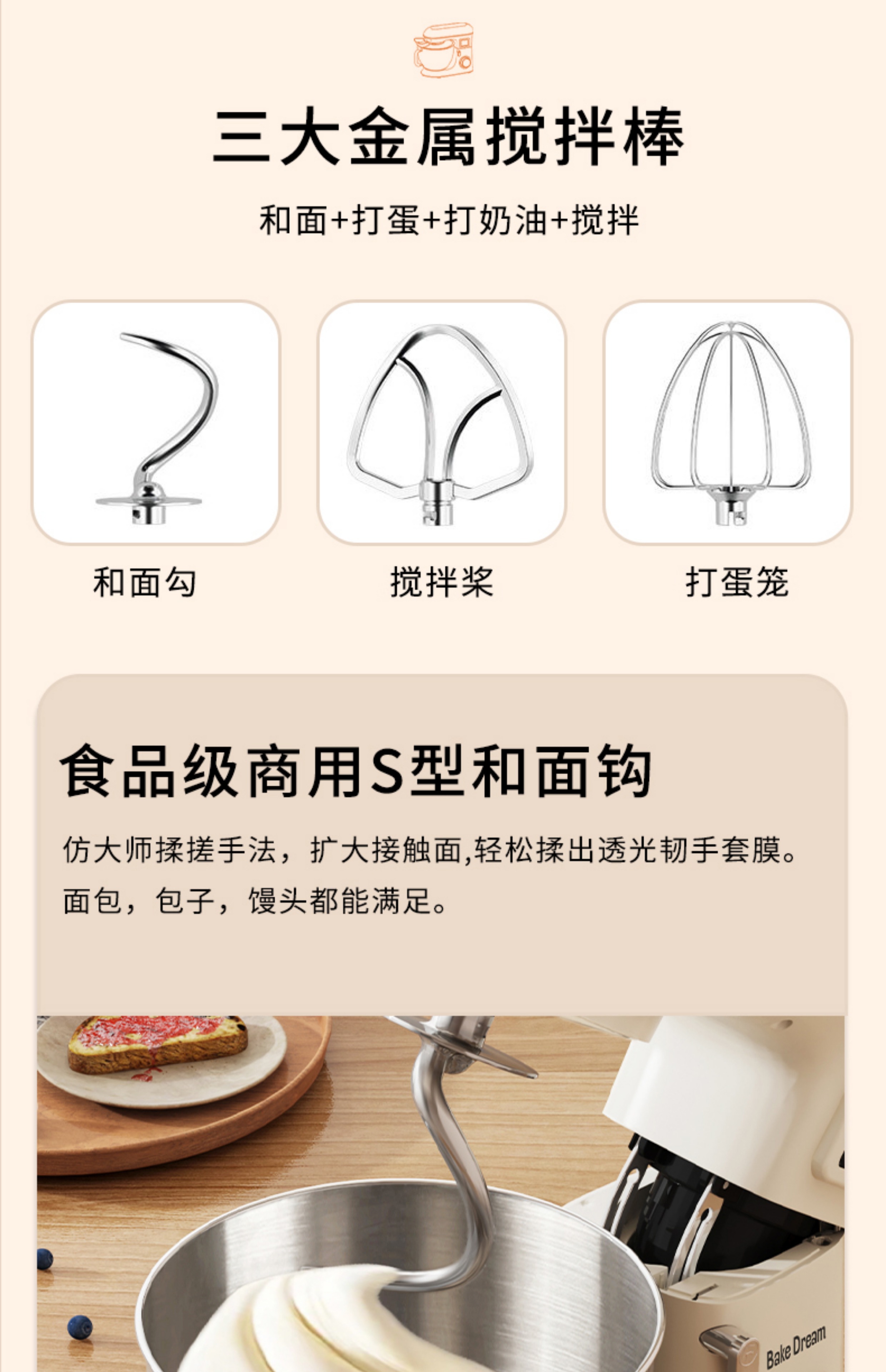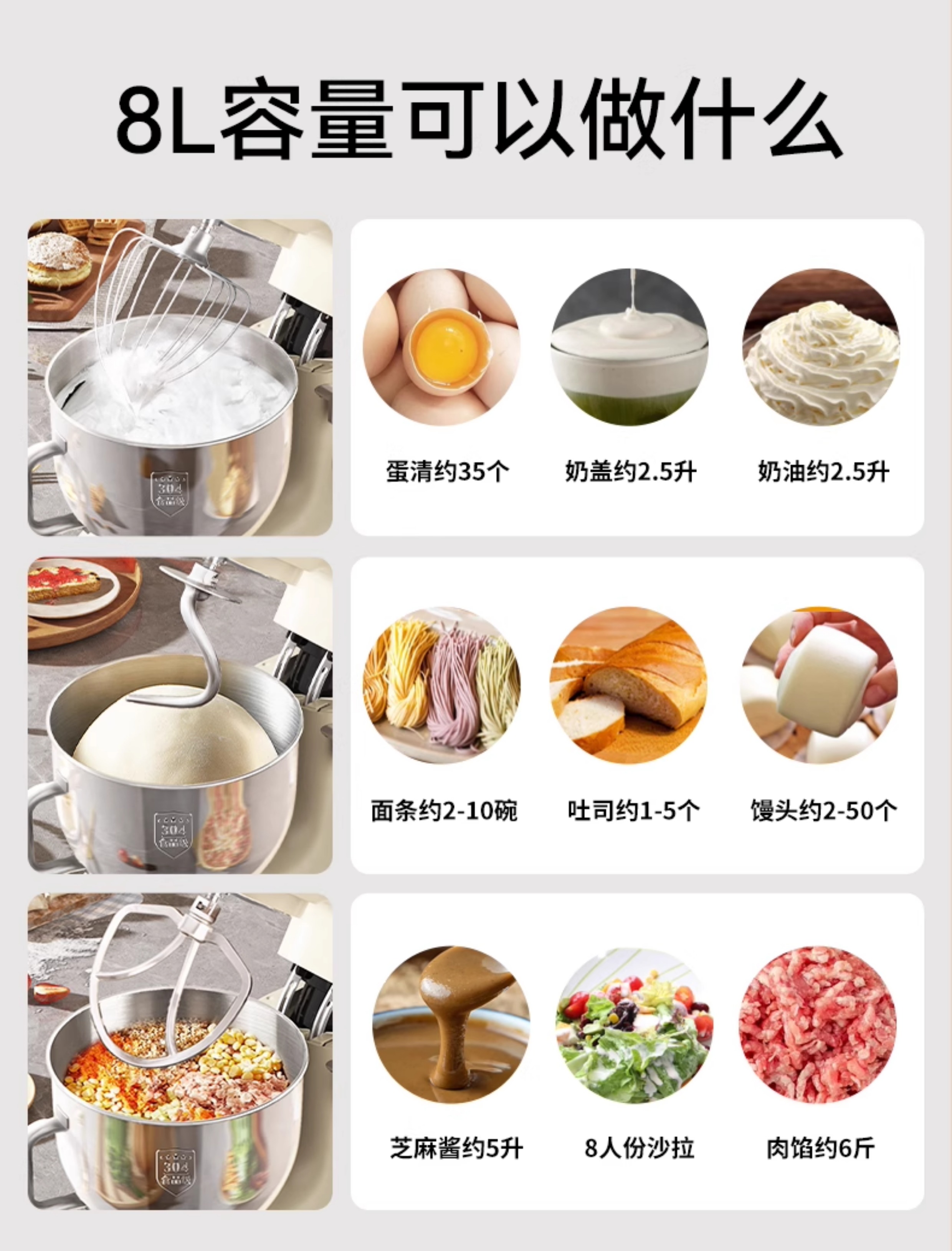 • 8L 업그레이드 버전 상업용 S 스네이크 후크 + 편리한 손잡이 [반죽 시간 조절 + 발효 + 평생 보증 + 흑색 화약 방지 디자인 추가] 1500W 베이지