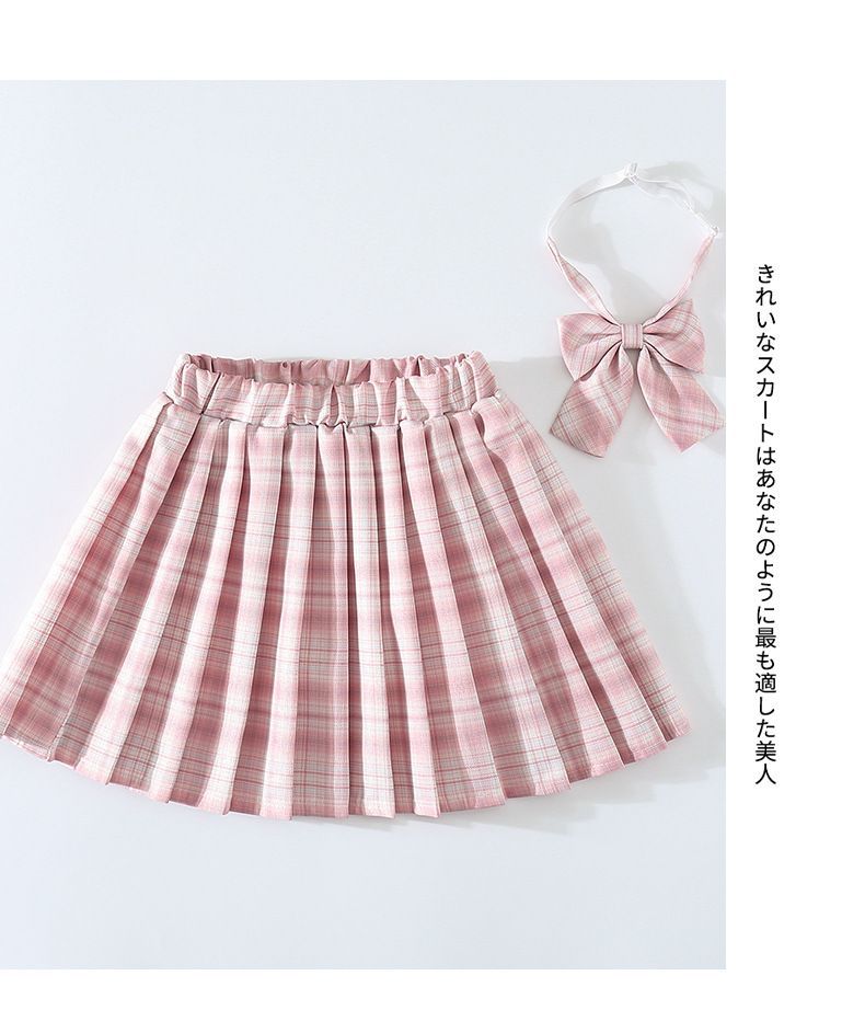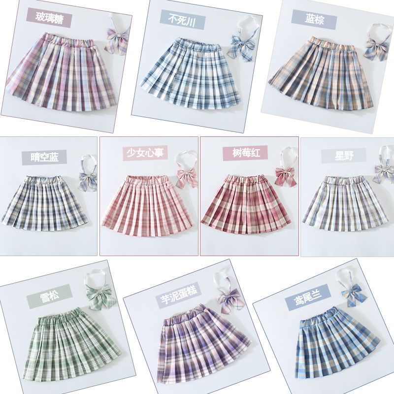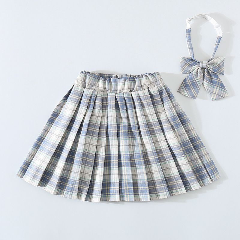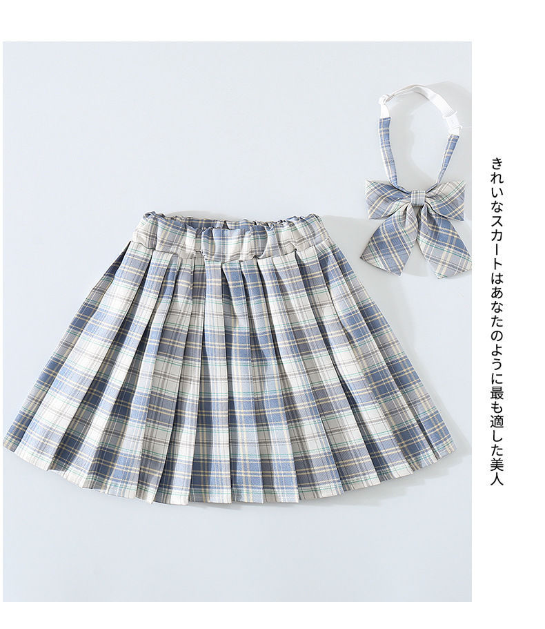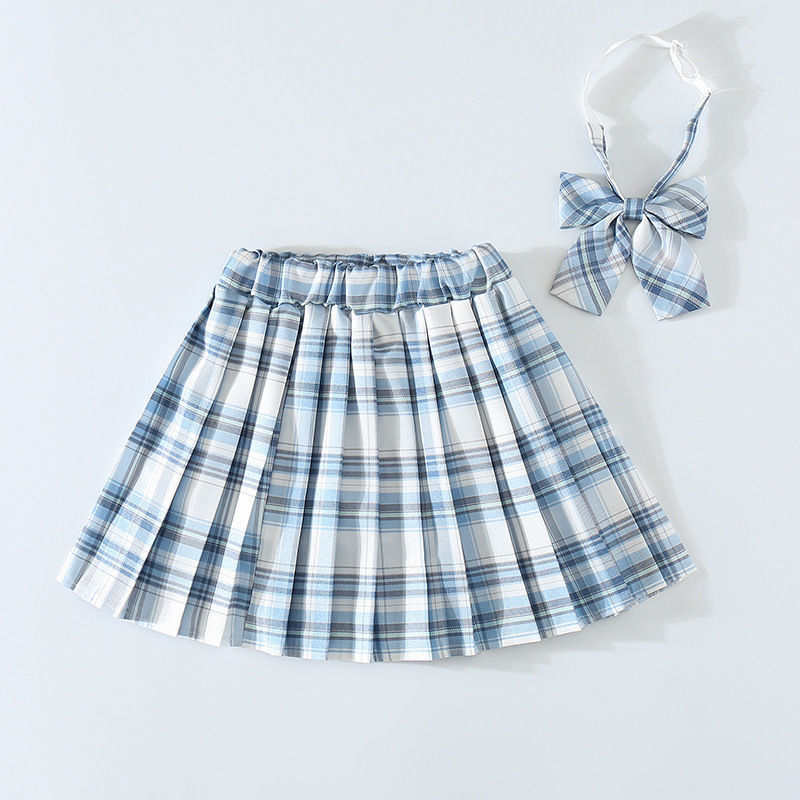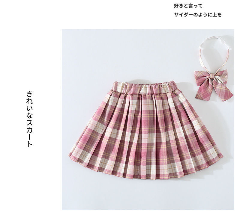 여자 JK 유니폼 스커트 봄과 가을 격자 무늬 어린이 짧은 치마 초등학생 큰 어린이 하프 길이 주름 치마