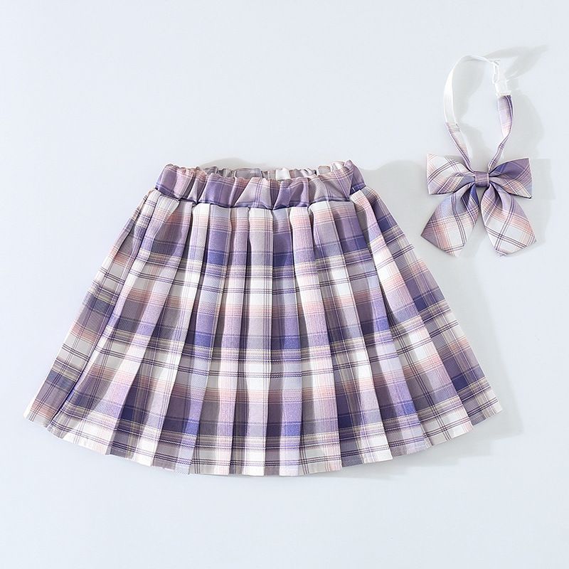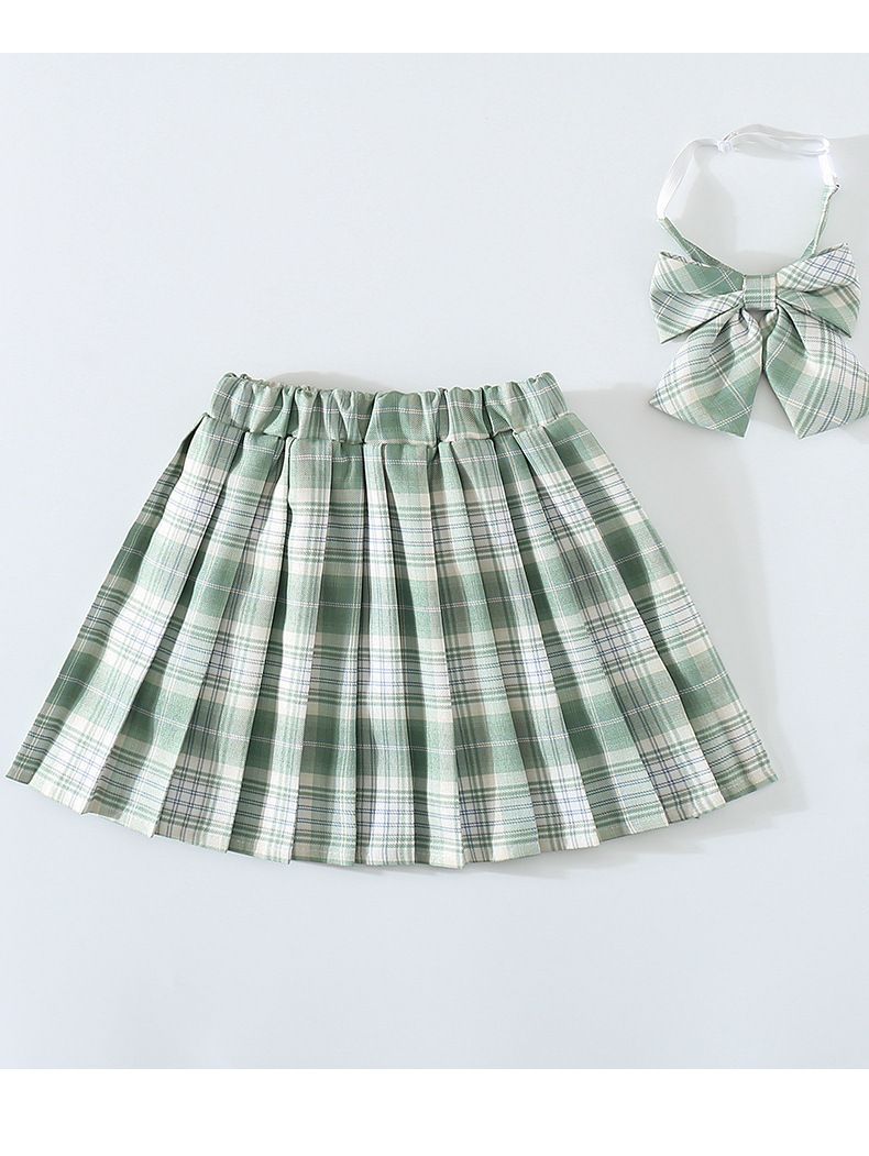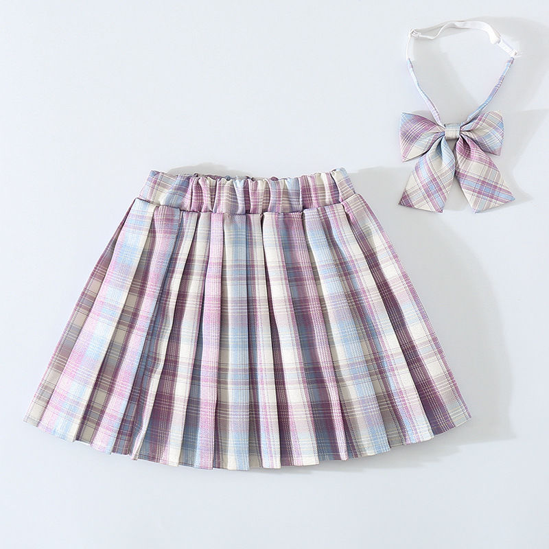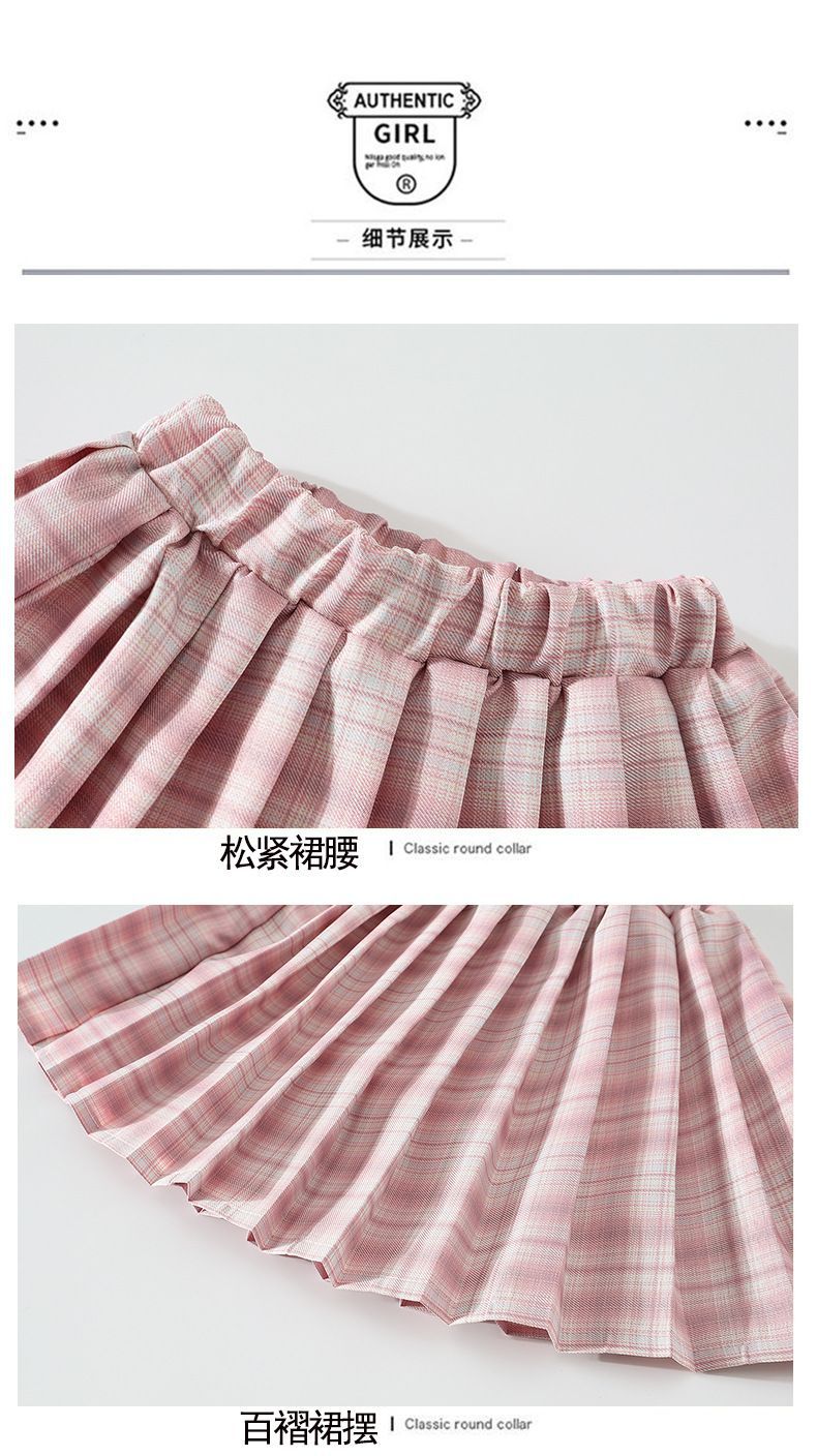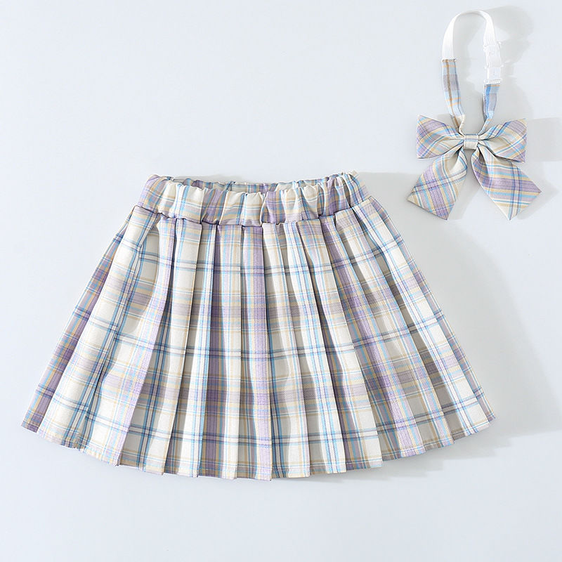 여자 JK 유니폼 스커트 봄과 가을 격자 무늬 어린이 짧은 치마 초등학생 큰 어린이 하프 길이 주름 치마