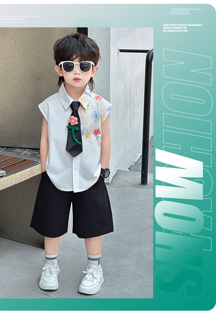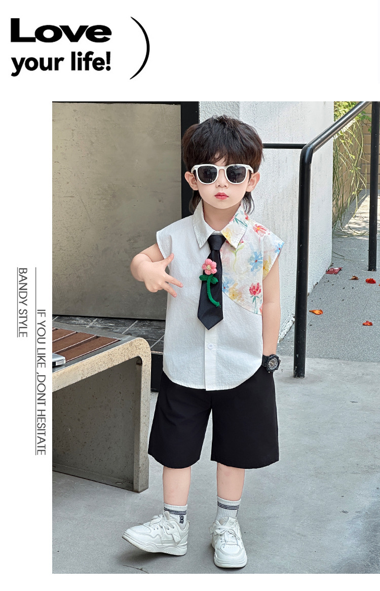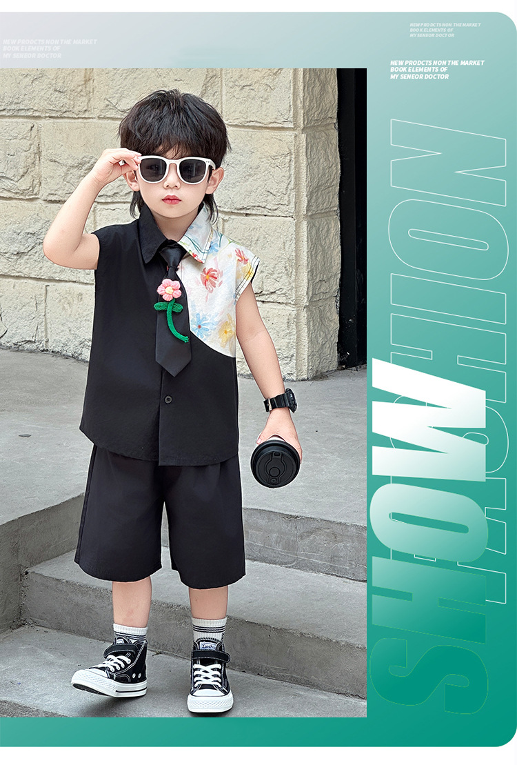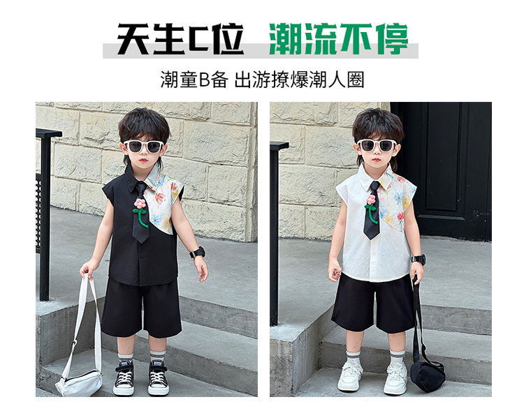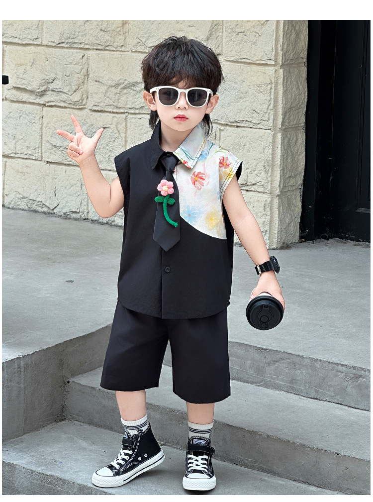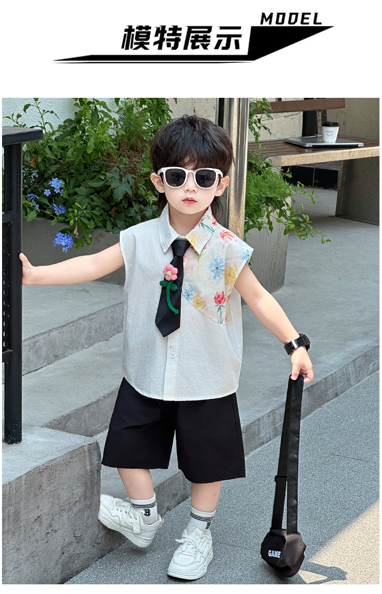 남아용 넥타이, 민소매 배색 셔츠 정장, 여름옷, 아동용 멋쟁이 셔츠 투피스 세트, 아기 멋쟁이 옷, 멋쟁이 옷스토어 가기