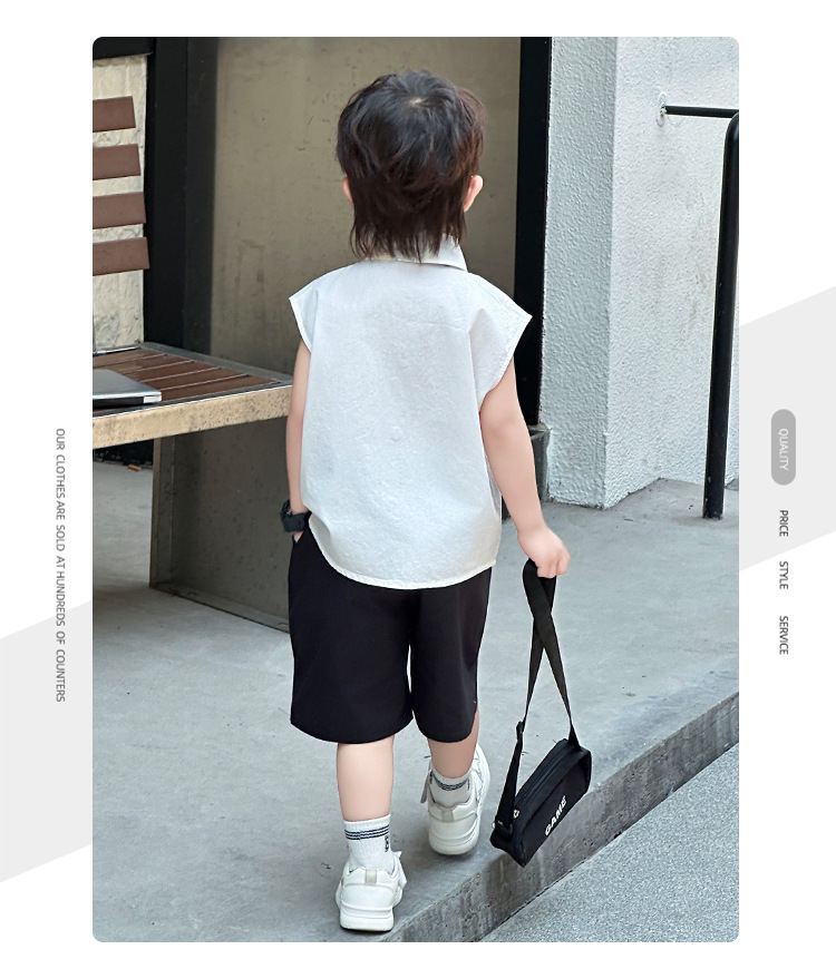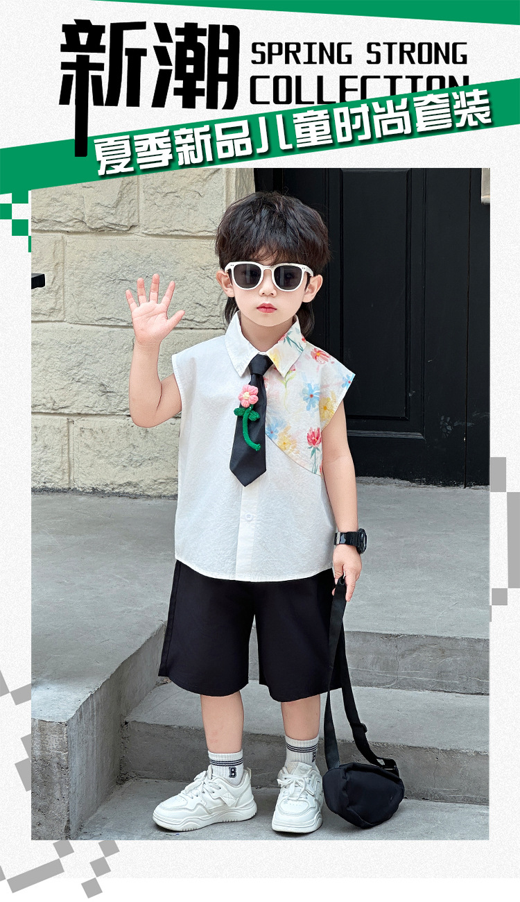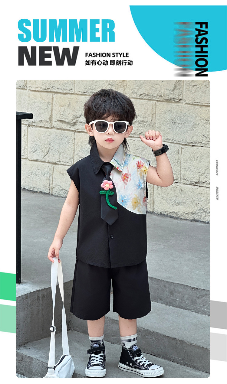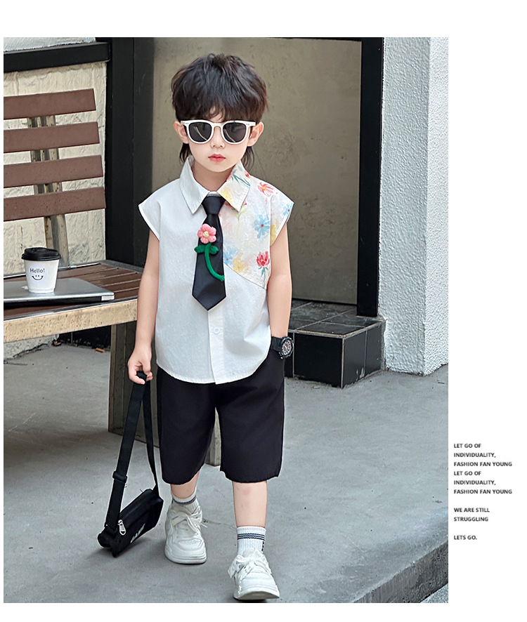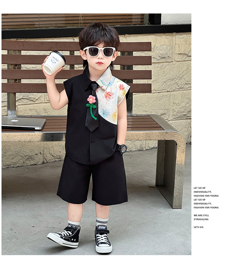 남아용 넥타이, 민소매 배색 셔츠 정장, 여름옷, 아동용 멋쟁이 셔츠 투피스 세트, 아기 멋쟁이 옷, 멋쟁이 옷스토어 가기